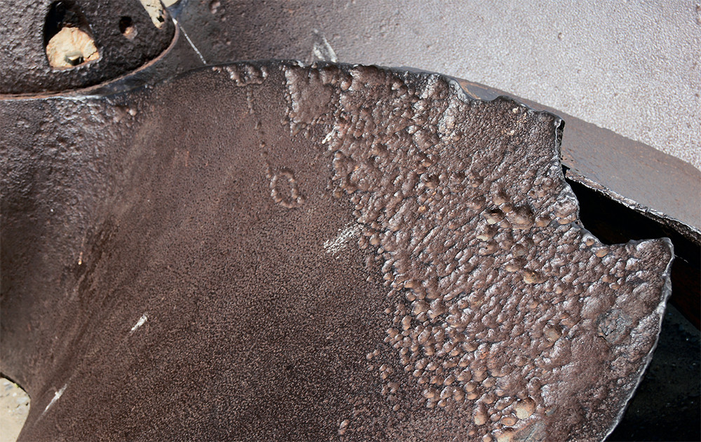 При обтекании потоком жидкости сложных поверхностей с острыми кромками возникают зоны очень низкого давления, где даже ледяная вода вскипает огромным числом крохотных паровых пузырьков-каверн. Из физики известно: чем выше скорость потока, тем ниже в нём давление. Попадая затем вместе с потоком в зону более высокого давления, пар внутри каверн мгновенно конденсируется и в них возникает чудовищное разрежение. В образующуюся пустоту со всех сторон с огромной скоростью устремляются молекулы воды, которые затем ударяются о поверхности, обтекаемые потоком. Давление этих микроскопических гидроударов впечатляет — тысячи атмосфер! Словно миллиарды сверхострых и сверхтвёрдых иголок, они строчат по деталям, выкрашивая их. Кавитационная эрозия способна разрушить гребные винты, клапаны и краны на трубопроводах и даже системы охлаждения двигателей.