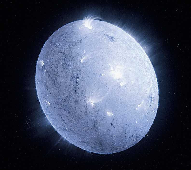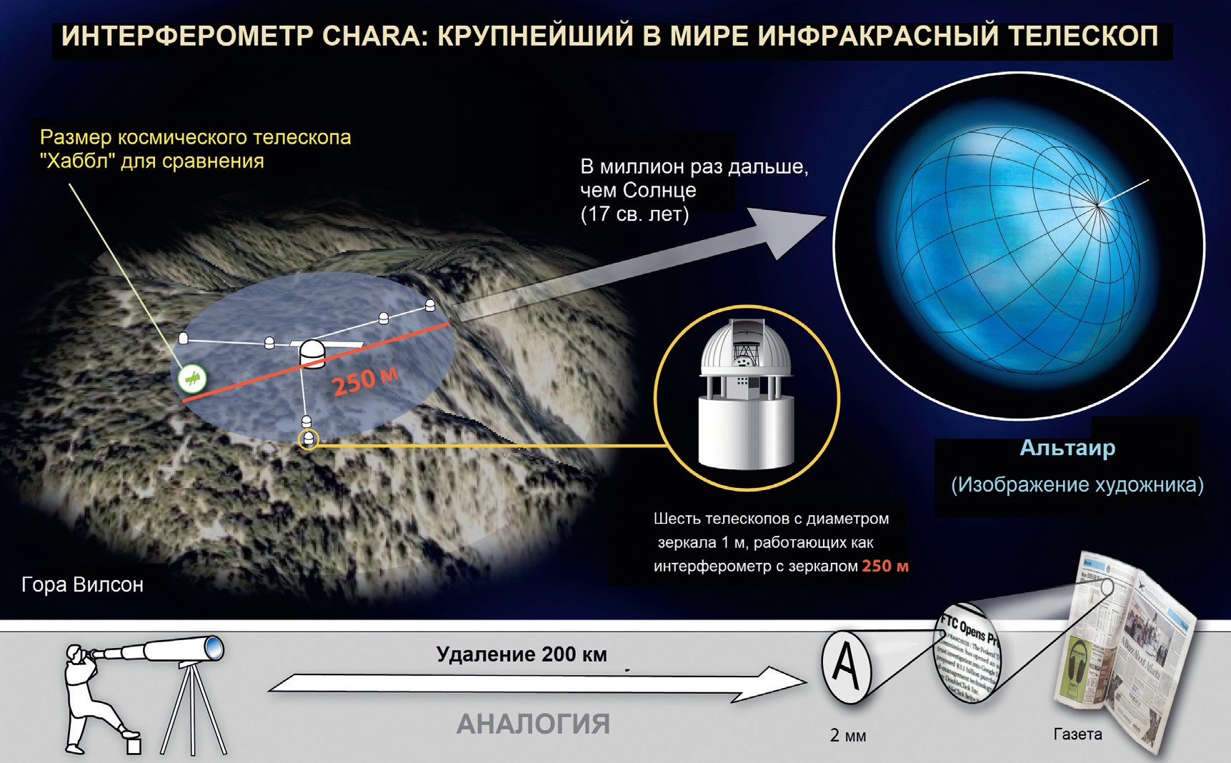 Альтаир (α Aql) — двенадцатая по яркости звезда на ночном небе, достаточно близко расположенная к Земле. Поэтому она — одна из немногих звёзд, для которых были получены прямые изображения их дисков. Угловой размер Альтаира был измерен интерферометрически ещё в 1960-е годы, а в 2007 году с помощью интерферометра CHARA (США) было впервые получено изображение его поверхности. Альтаир быстро вращается, совершая полный оборот вокруг своей оси менее чем за 8 часов (2020). Для сравнения, полный оборот Солнца вокруг своей оси на экваторе происходит чуть больше, чем за 25 земных дней. Скорость на экваторе у Альтаира около 286 км/с. Из-за такой высокой скорости вращения он не сферический, а сплющенный на полюсах, его экваториальный диаметр более чем на 20 процентов больше полярного. Теория предсказывает, что из-за быстрого вращения сила тяжести на поверхности, эффективная температура и, как следствие, яркость звезды должны уменьшаться от полюсов к экватору. Это явление, известное как гравитационное потемнение, было впервые подтверждено для Альтаира в 2001 году с помощью измерений на интерферометре Паломарской обсерватории. Альтаир вместе с системой альфа Центавра находится в близком межзвёздном облаке G (G Cloud), образованном из скопления газа и пыли.