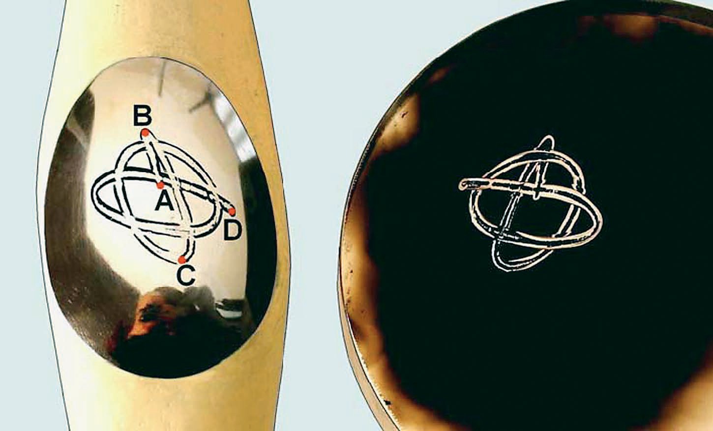 Но если кельт закрутить в другую сторону, в нашем случае против часовой стрелки, то он, сделав несколько оборотов в этом направлении, затем резко останавливается и, недолго покачавшись, самостоятельно раскручивается и далее устойчиво вращается в направлении, противоположном начальному, совершая тем самым реверс вращения. Получается, что кельт самостоятельно, в отсутствие какого-либо внешнего силового воздействия, изменяет заданное ему направление вращения, как бы противясь вертеться в «нежелательном» для него направлении!