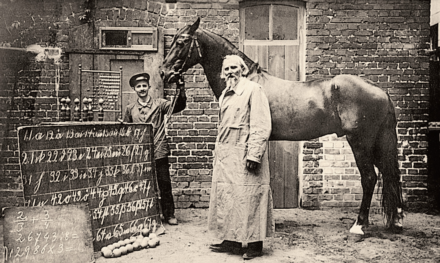 В начале прошлого века по Германии путешествовал удивительный конь по кличке Ганс. Путешествовал он не один, а вместе с хозяином, бывшим преподавателем математики Вильгельмом фон Остином. Перед почтенной публикой хозяин задавал коню арифметические примеры, а тот их решал, и в большинстве случаев решал правильно. Ганс умел складывать, вычитать, умножать и делить, причём проделывал всё это даже с большими числами и с дробями. Он понимал не только хозяина, но и других людей, более того, понимал устные вопросы и вопросы, записанные мелом на доске, как если бы умел читать.