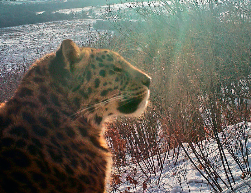 Наконец, фоторегистраторы помогают обнаружить леопардов, которые отправились изучать новые территории. Одного из них недавно зафиксировали в 56 км к северу от ядра популяции. О том, что в изрядном отдалении от заповедника объявился леопард, сообщили местные жители. Сотрудники заповедника с помощью фотоловушек сумели по узору пятен, уникальному у каждого леопарда, узнать в нём молодого самца, которого в прошлом году видели ещё котёнком с матерью на территории национального парка. Наблюдения за ним помогли подтвердить гипотезу, сформировавшуюся за десятилетия изучения дальневосточных леопардов в дикой природе: крупные реки для них — труднопреодолимое препятствие. Судя по следам на берегу реки Раздольной, где молодой самец провёл несколько дней в поисках переправы, он так и не рискнул пересечь основное русло.