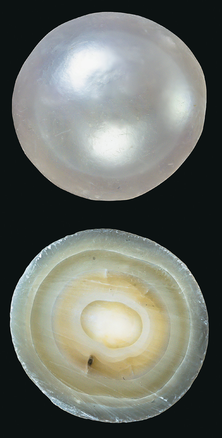 Пожалуй, самый древний «камень», который люди связывали с Луной, — это жемчуг. Первые упоминания о нём и его «волшебной» способности изгонять «силой Луны» ночных злых духов встречаются на клинописных табличках из Месопотамии (4000 лет до н. э.), а позже — в индийских религиозно-философских трудах «Веды» (около 1700 лет до н. э). Довольно долгое время этот дар моря прочно занимал место единственного лунного камня. С точки зрения современной науки, жемчуг всё же не камень, а минералоид — твёрдое округлое биогенное образование, извлекаемое из раковин некоторых морских и речных моллюсков. Жемчуг не относится к минералам, хотя содержит в своём составе неорганический кальцит-арагонит, помимо органического рогоподобного белкового вещества конхиолина. Однако в те далёкие времена, когда появились первые упоминания о жемчуге, о таких мелочах не думали, точнее, не догадывались.