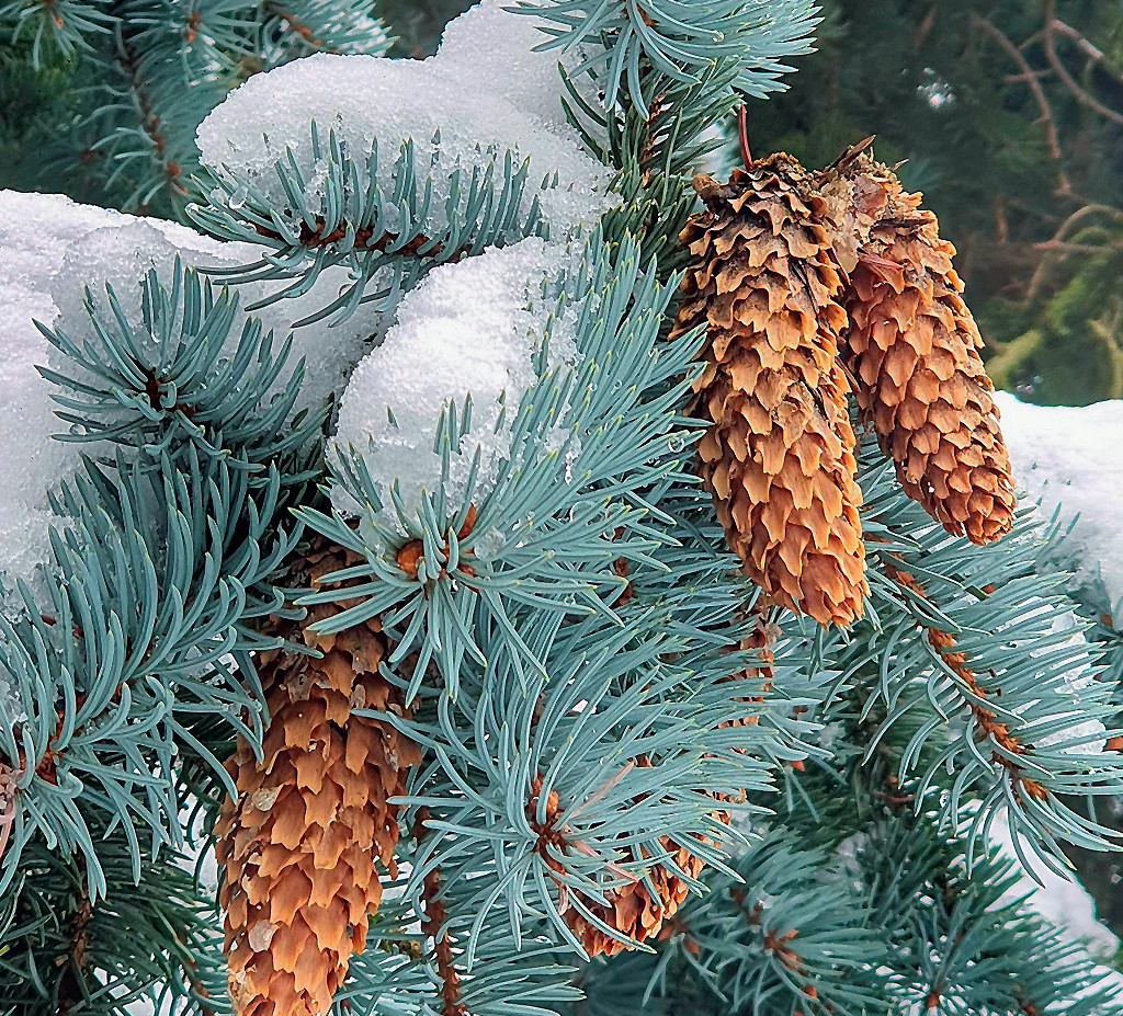 Для начала обсудим, почему зима такое трудное время для деревьев и трав. Основная опасность, как ни странно, — это сухость. Вроде бы воды кругом предостаточно, но она вся замёрзшая — что на поверхности, что в почве. Если продолжать испарять влагу в том же объёме, что и летом, восполнить её не получится, неминуемо засохнешь и погибнешь. А зимой вода испаряется хорошо — вспомните, как быстро сохнет бельё на морозе. Поэтому адаптация растений к зиме во многом направлена на снижение потерь влаги. Листопадные деревья сбрасывают листву и впадают в спячку. Хвойные листву сохраняют, но снижают фотосинтез до минимума, как и испарение. Их хвоинки маленькие, узкие, покрыты толстой кожицей, у многих защищены слоем воска, что особенно заметно на ели голубой, или колючей (Picea pungens).