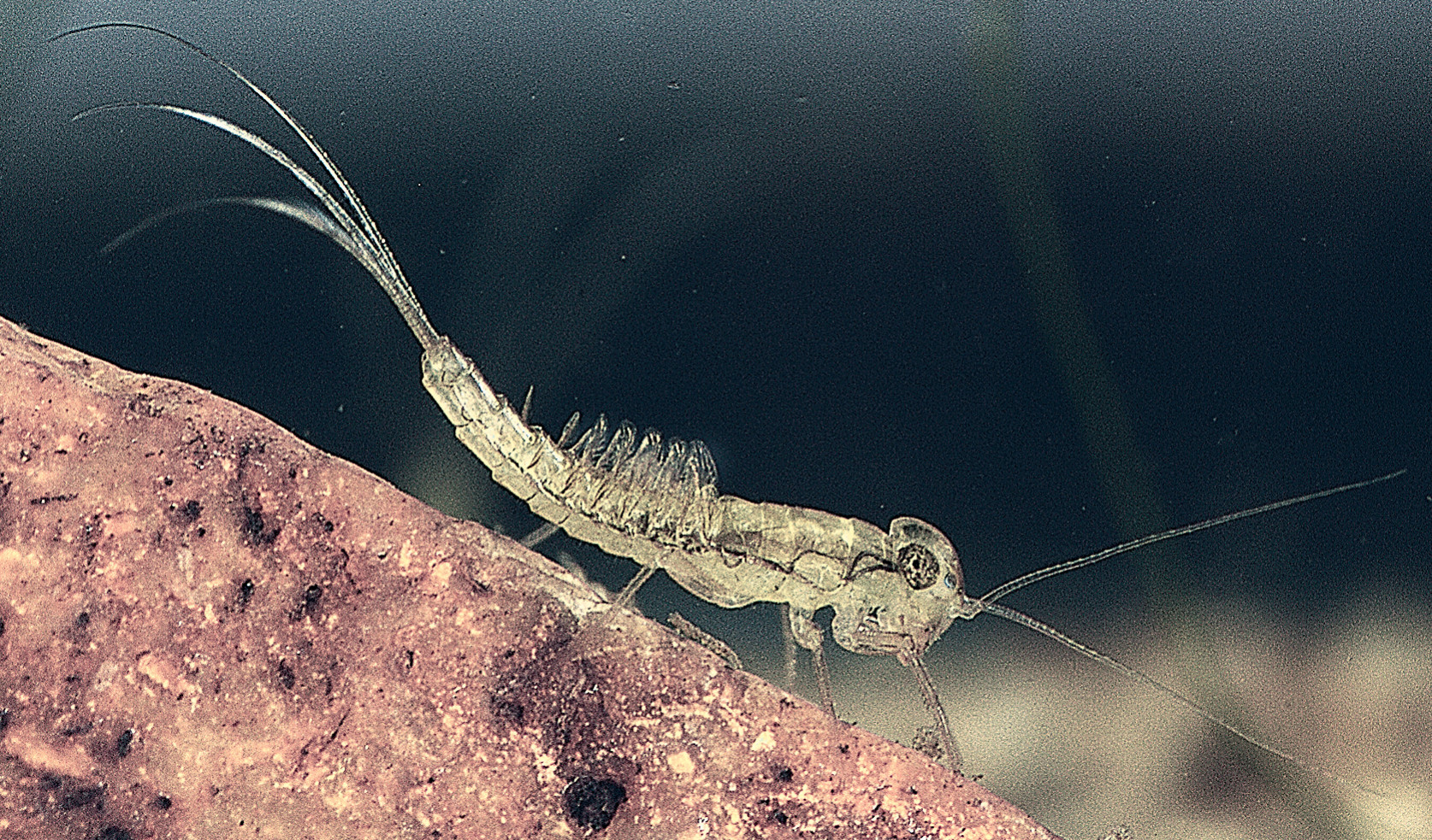 В пресных водоёмах рядом с личинками подёнок обитают личинки веснянок (отряд Plecoptera). Они тоже обладают хвостовыми нитями (двумя) и похожи по облику на личинок подёнок, но в деталях различаются. Личинки веснянок часто хищничают и, кстати сказать, могут сокращать численность подёнок. Они живут в воде несколько лет и многократно линяют (до 20 раз), а взрослые веснянки, за редкими исключениями, не питаются и живут всего 1—3 недели. Некоторые виды веснянок появляются ранней весной и ползают по льду, они на редкость морозоустойчивы. За отрядом закрепилось его весеннее название, потому что летом они достаточно редки и незаметны, а на снежно-белом фоне бросаются в глаза. Как и подёнки, веснянки могут служить индикатором чистоты воды. Ручейники (отряд Trichoptera — волосистокрылые) в своём личиночном детстве обитают в воде и известны благодаря разнообразным подвижным домикам, в которых скрываются от рыб. Едва ли кто-нибудь замечал их в природе, разве что рыболовы, использующие личинок как наживку.