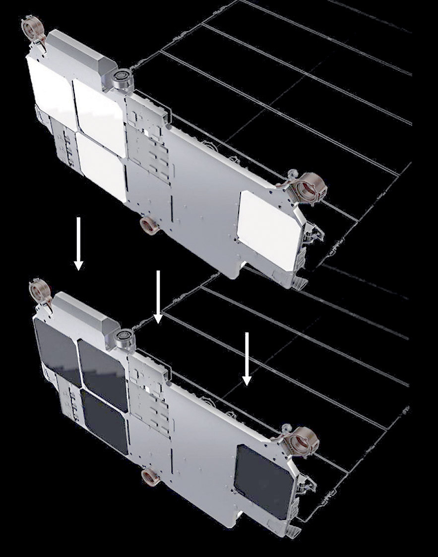 — Не совсем так. Сначала покрасили некоторые спутники Starlink (их светлые антенны), уменьшив блеск аппарата примерно на одну-полторы звёздные величины, то есть в три раза. Если обычный спутник отражает примерно 25 процентов падающего на него солнечного света, то тёмный спутник (этот вариант назвали Darksat) отражает уже только восемь процентов. Но, как оказалось, красить антенны не годится, поскольку страдает радиопропускная способность. Тогда стали делать специальные светоблокирующие козырьки (такие спутники называют Vizorsat).
