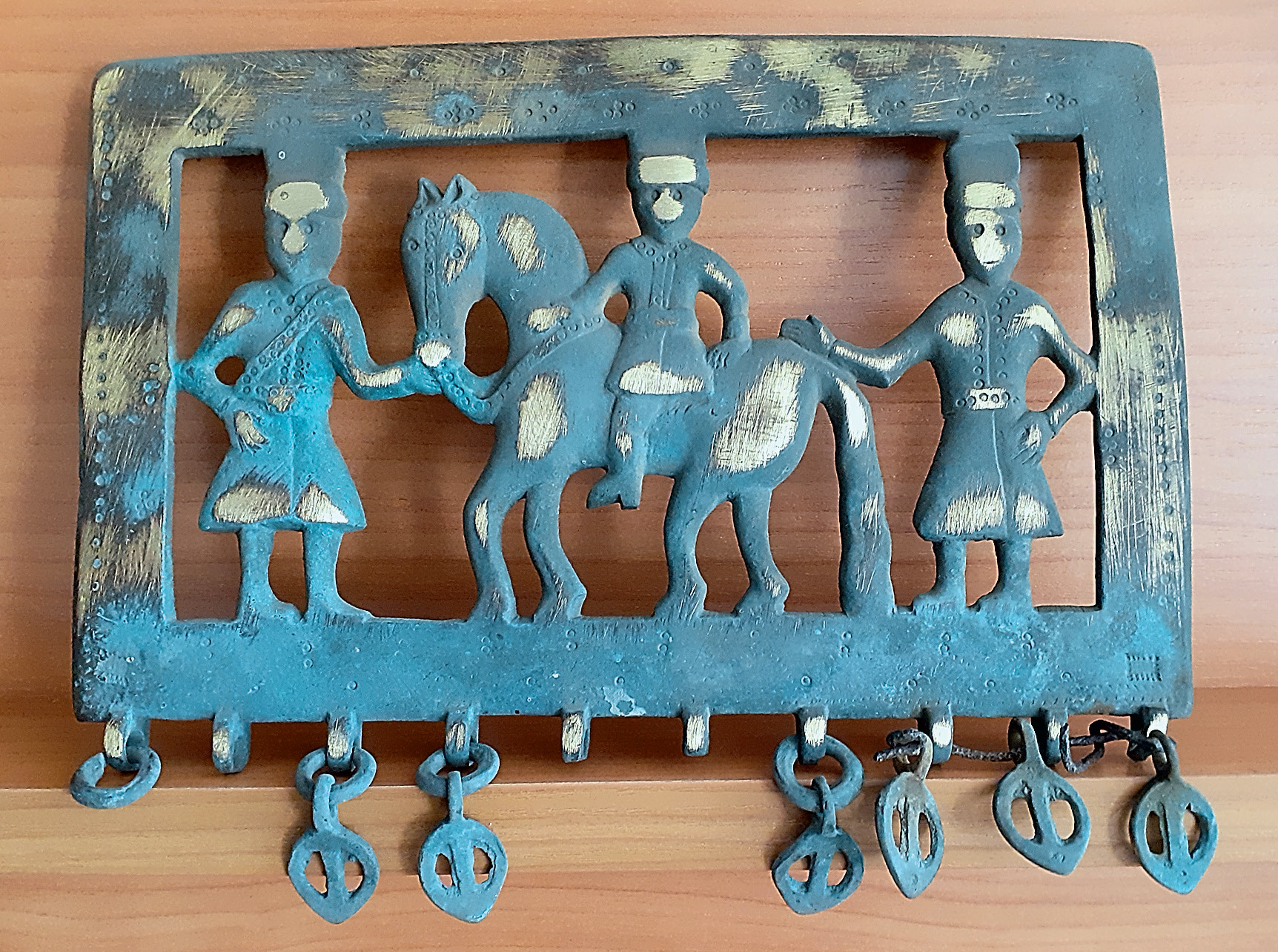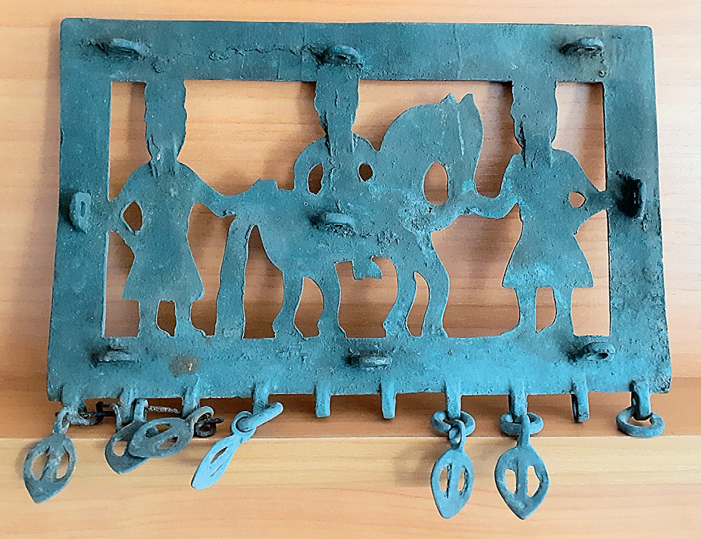 Это изделие из латуни — так называемая бляха коновала, украшение, точнее, профессиональный опознавательный знак на сумке с принадлежностями коновала. Коновалом сейчас иногда презрительно называют плохих врачей, а в XIX веке это слово применялось совершенно иначе. Коновалами называли весьма уважаемых специалистов, которые лечили лошадей и коров. Это про них существовала загадка: «Кто коню в зубы смотрит?» Нередко коновала приглашали и как специалиста, способного оценить стать и здоровье покупаемой лошади или коровы (в том числе «посмотреть в зубы»), помочь продавцу и покупателю договориться о цене.