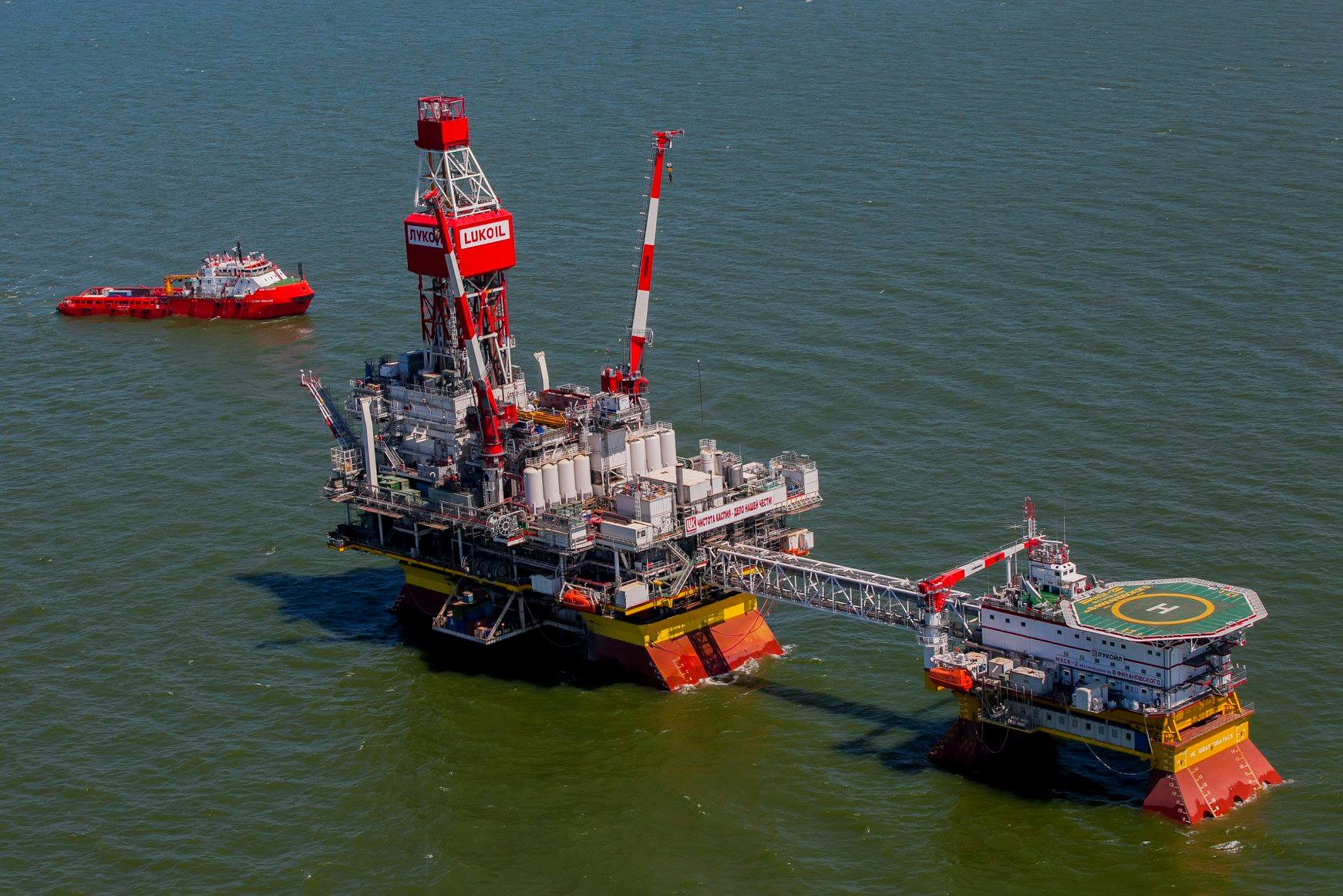 Попав на морской ледостойкий стационарный комплекс месторождения им. В. Филановского, которое разрабатывает ЛУКОЙЛ, долго не можешь сообразить, чего же не хватает. И только через некоторое время понимаешь — там не пахнет нефтью. Краской пахнет, морским ветром пахнет, в столовой пахнет свежими булочками, а нефтью — нет. И это удивительно. Ведь на платформе ежегодно добывают и подготавливают к отгрузке свыше 6 млн тонн нефти.