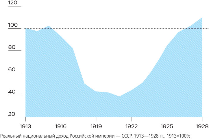 1928 г., 1913=100% (источник: Первая мировая война, Гражданская война и восстановление: национальный доход России в 1913–1928 гг. / Андрей Маркевич, Марк Харрисон; авторизованный пер. с англ. Е. Артемовой.— Москва: Мысль, 2013. С. 18.)
