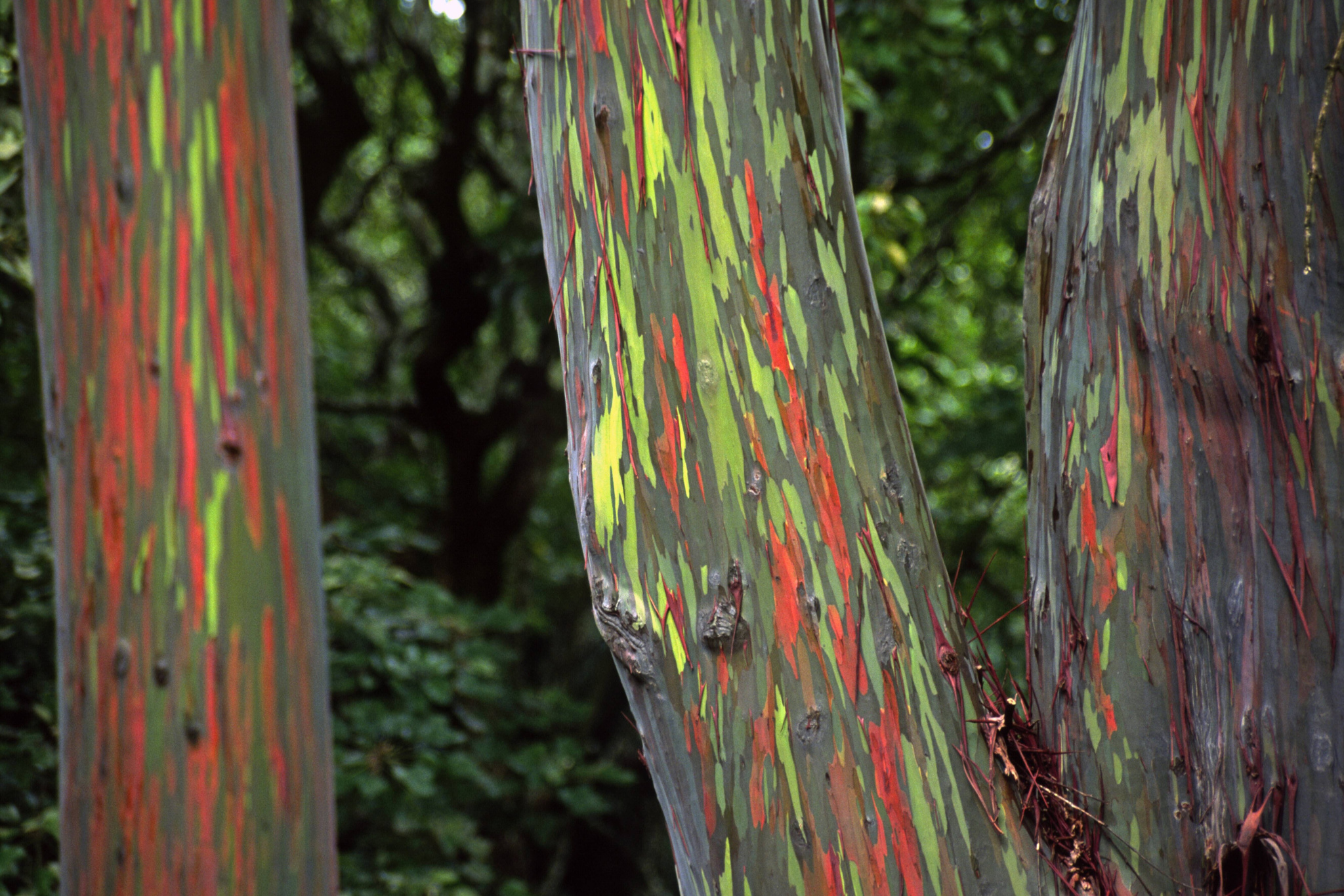 Eucalyptus deglupta выглядит как живое произведение искусства. Это дерево естественно произрастает в Филиппинах, Индонезии и Папуа-Новой Гвинее и является единственным видом эвкалипта, который встречается в дикой природе северного полушария. Он может вырастать до 78 метров в высоту и до 2,4 метра в ширину и сохраняет свою листву круглый год. Кроме того, в отличие от других видов, радужный эвкалипт не выделяет ароматное масло и используют его в основном для производства целлюлозы.