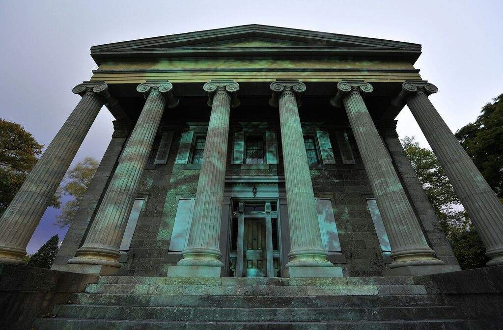 Фасад серого особняка Бейкеров спрятан за шестью колоннами. Сегодня огромный дом выглядит серым и почти вымершим в те дни, когда не переполнен туристами. Но не так давно, всего два века назад, это был процветающий богатый особняк. Сейчас же поместье Бейкеров стало приютом призраков.