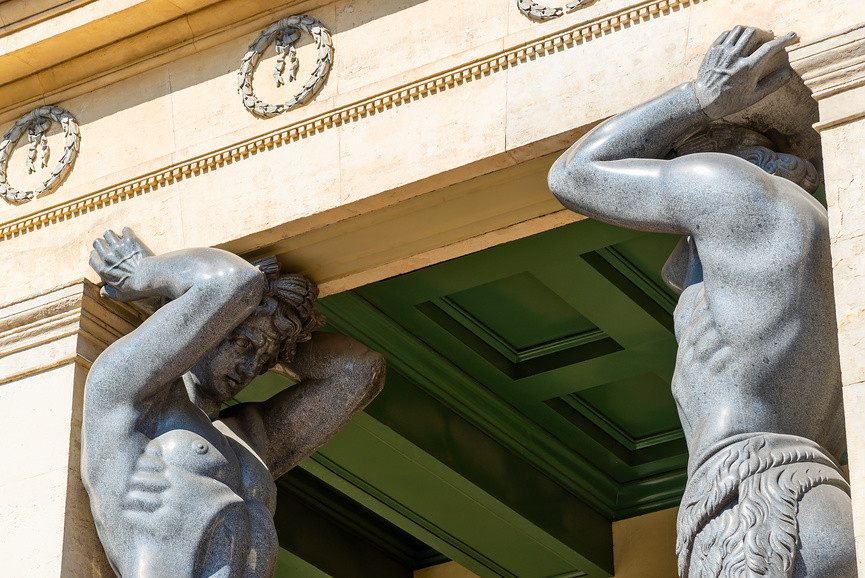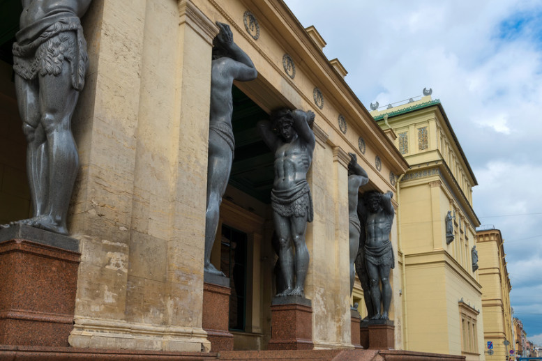 Когда достроили Большой Эрмитаж, стал ясно, что он уже не вмещает всю коллекцию произведений, которую начала собирать императрица Екатерина II. Новый Эрмитаж стал первым в России сооружением, специально построенным для музея. Проект здания подготовил немецкий архитектор Лео фон Кленце. Но позже архитекторы Василий Стасов и Николай Ефремов его немного изменили, чтобы вписать здание в уже сложившийся архитектурный ансамбль. Акцент в фасаде сделали на масштабном портике с пятиметровыми атлантами. Фигуры античных персонажей вырезал из сердобольского гранита скульптор Александр Теребенёв.