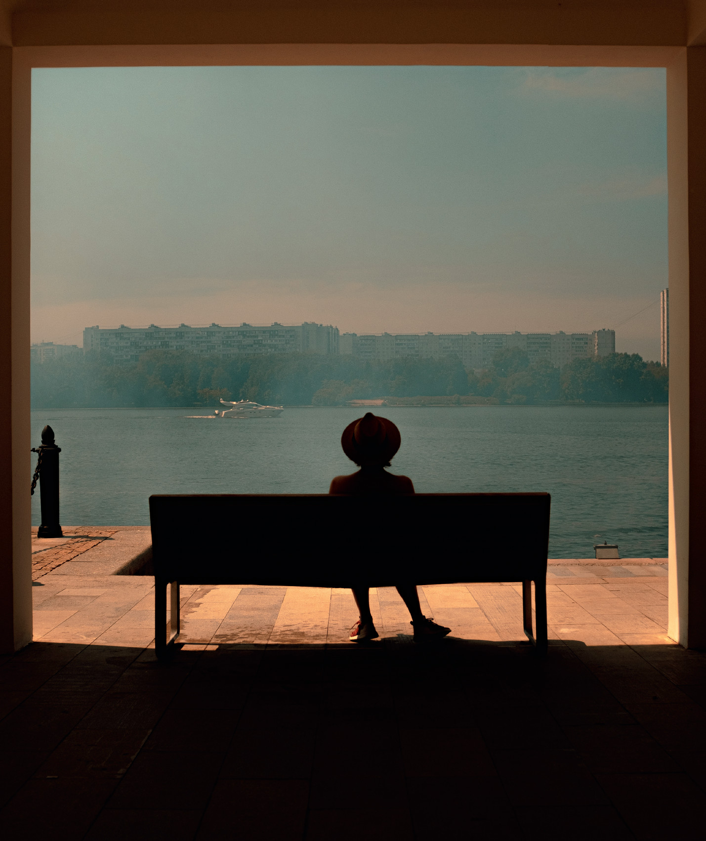 «Я сделал эту фотографию в Москве, недалеко от Северного речного вокзала. Был жаркий день, я заметил женщину, которая сидела на скамейке в тени и долгое время смотрела на воду. Вся архитектура этого места так красиво обрамляла ее фигуру и подчеркивала спокойствие и безмятежность момента».
