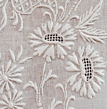 Техника для продвинутых, разновидность ажурной прорезной глади. Все детали рисунка обшивают по контуру, работа дополняется элементами глади или декоративных швов. Техника появилась в XIV веке в Италии, а затем стала популярной в Европе. Причем тут имя французского кардинала? Говорят, его святейшество сам недурно вышивал именно таким способом.