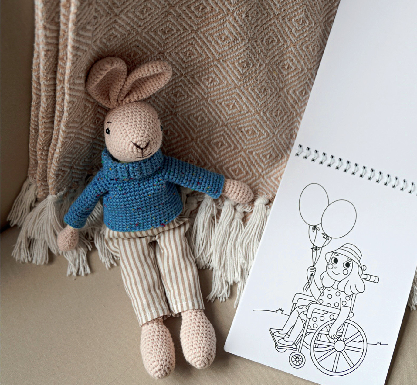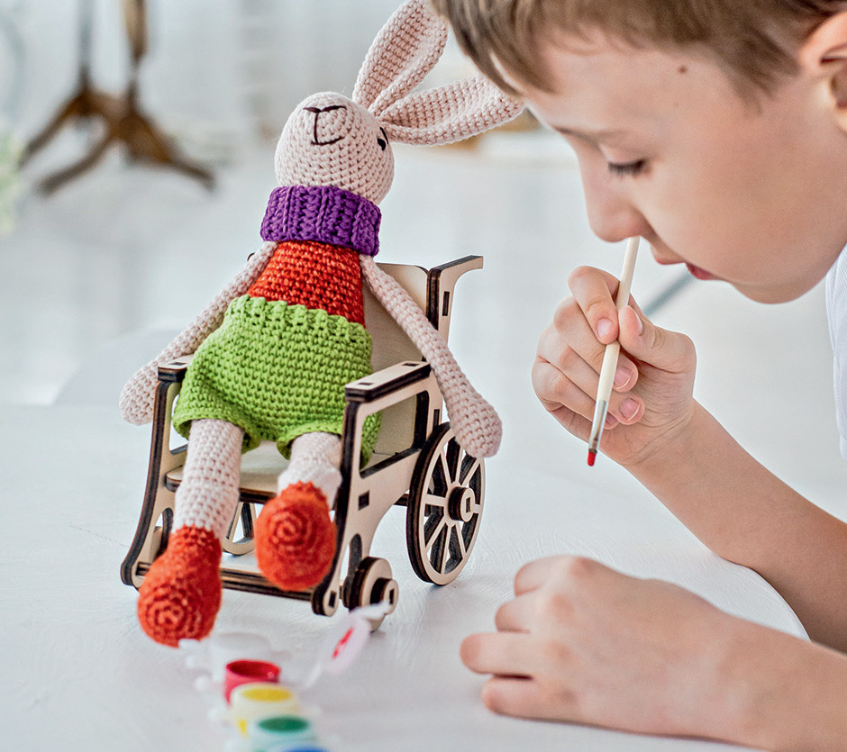 Я с детства любила что-то делать руками. В разные периоды жизни то вязала, то шила текстиль для детской, то создавала бижутерию из полимерной глины или фетра. Что-то дарила, что-то покупали знакомые. А когда появились дети, я начала вязать игрушки. Сначала для них, потом для родственников. Часть продавала на ярмарках. Оставить работу и уйти полностью в творчество хотелось, но было страшно, станет ли это прибыльно. В 2018 году я познакомилась с Ольгой Барабановой – ее компания Kinesis создает ультралегкие инвалидные коляски. Меня настолько вдохновила ее история, что через год я уже вязала игрушки для краудфандинга – так мы пытались найти деньги на коляски. С работы я ушла с целью делать что-то полезное и доброе. Честно, я не знала, что это будет. А летом 2020-го мне пришла идея сделать вязаного зайчика в инвалидной коляске – так мне хотелось привлечь внимание к теме инклюзии, показать, что все мы разные. И тогда я поняла: вот оно, моё! Я чувствовала, что делаю что-то действительно важное. Сейчас проект вырос и несет в себе более глубокую миссию. Помочь родителям через творчество и игру рассказать детям о людях с особыми потребностями, о важности включения их в социальную жизнь. Для этого и создаются магнитные игры, раскраски, брошюры и многое другое.