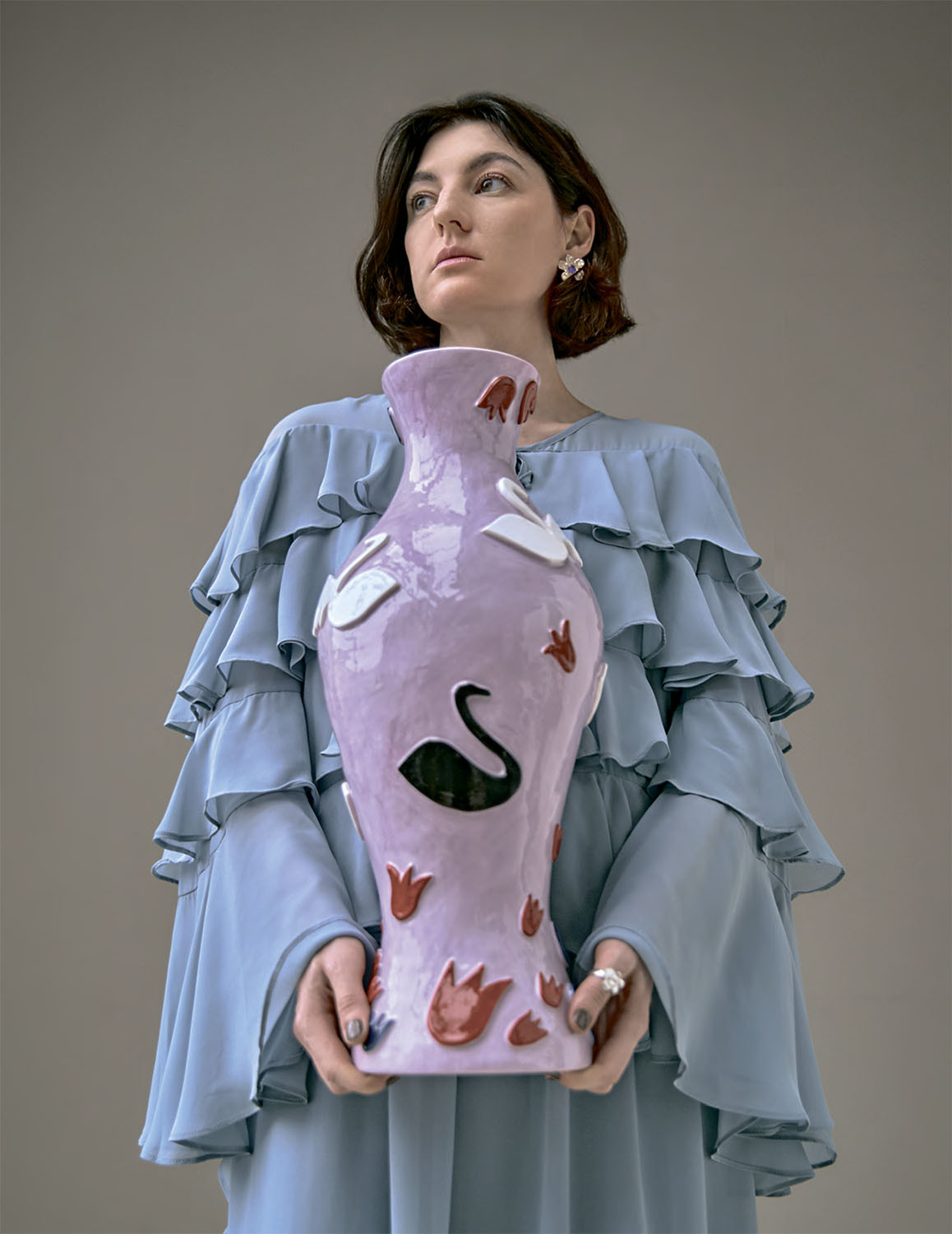 Моим главным инструментом в работе является цвет. В керамике я сочетаю простоту формы и яркость содержания через работу с чистыми цветами. Я родилась и выросла в Санкт-Петербурге, но несу в себе традиции южного быта и яркой визуальной культуры, которые дарит мне большая и творческая семья. Бабушка с дедушкой долго жили в горах в верховьях реки Мацесты около Сочи, где растили детей, обустраивали быт — яркий, сочный, хотя и скромный. Бабушка вышивала цветные настенные ковры, скатерти, ухаживала за садом и очень вкусно готовила.