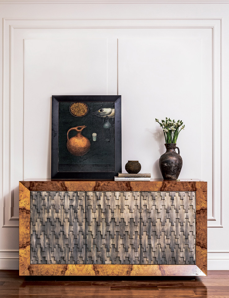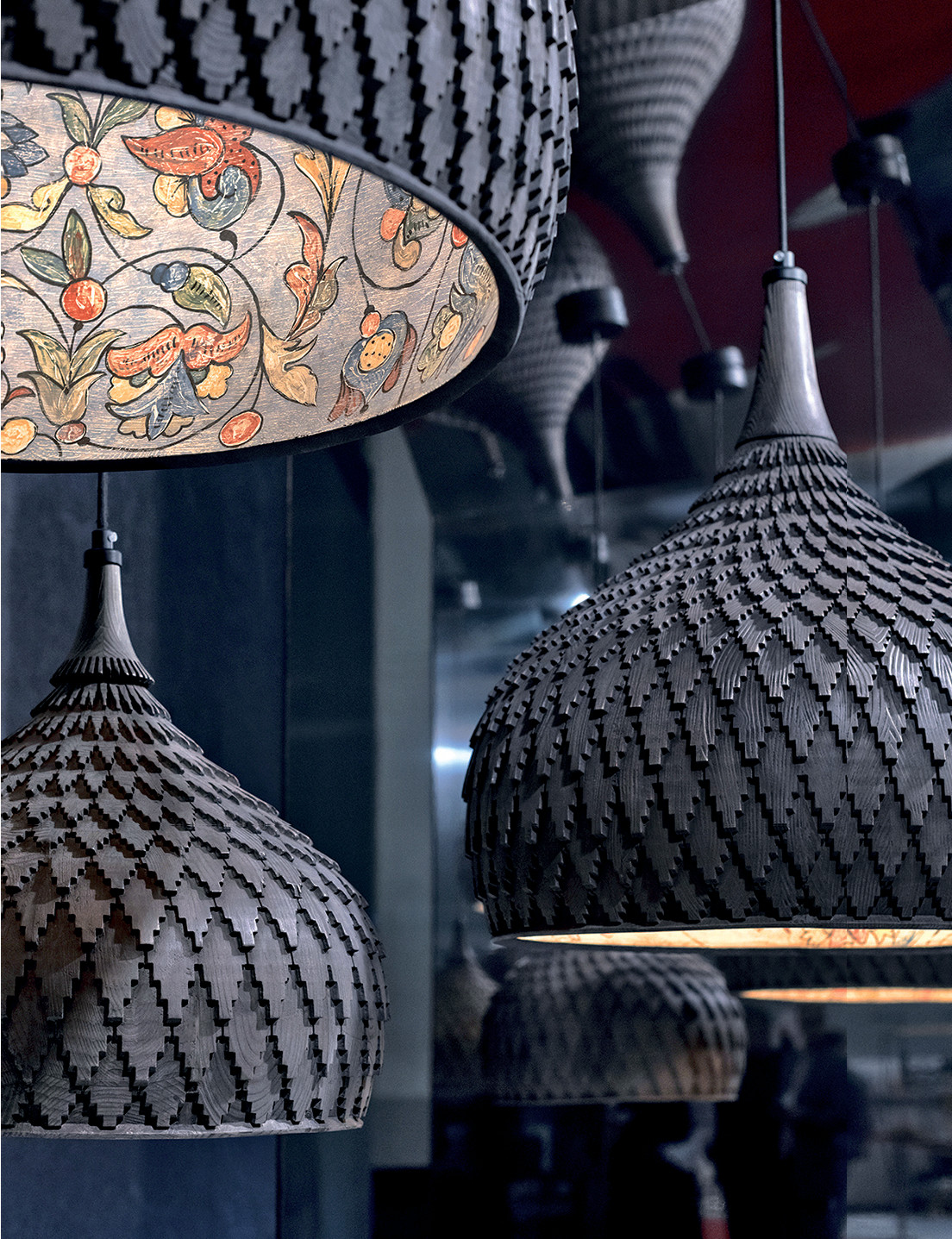 Элина Туктамишева – интерьерный и предметный и дизайнер, декоратор, основатель и куратор выставки «Трын*Трава. Современный русский стиль» и человек, влюбленный в русскую культуру. Вещи, которые она создает, придуманы в диалоге с образами деревянных храмов Русского Севера, народных ремесел, былин и сказок.