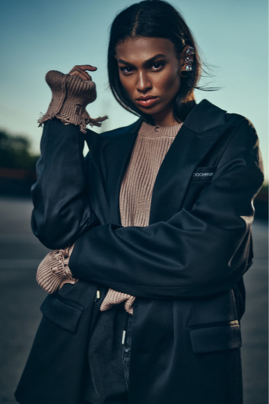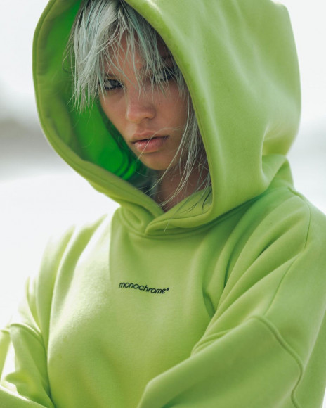 Алиса: Нет, не чушь. Просто это была самая обыкновенная футболка с большим логотипом, мерч. Эту футболку я надела на Лену Подкаминскую, которую собирала на премьеру фильма. Я, если честно, уже забыла про эту историю, поэтому мы долгое время всем говорили, что первой одеждой под брендом Monochrome был гипертрофированно большой свитшот с непропорционально длинными рукавами. Он немного похож на то, что мы создаем сейчас.