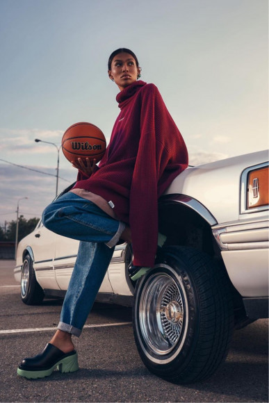 Алиса: Оверсайз тогда еще никто не понимал. Например, когда я решила сделать свитер (такой же большой, как наши свитшоты) и пришла на вязальное производство, то услышала от тетушек, которые там работали: «Дочка, это же четыре свитера можно связать!» Говорю, мне не четыре, мне один надо. «Да и манжет неудобный, кто же такое будет носить?» — не останавливались они.