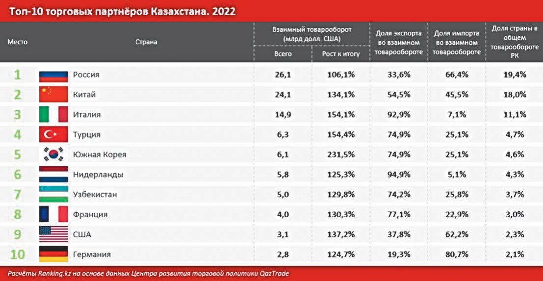 Китай для Казахстана также крупный инвестор. Помимо того, что китайские торговые фирмы контролируют огромный сегмент казахстанского рынка, китайцы построили или строят предприятия в промышленности, энергетике, финансовой сфере и сельском хозяйстве. Крупнейшие проекты, реализованные китайскими компаниями в Казахстане – это Шымкентский нефтеперерабатывающий завод, Алматинская фотоэлектрическая электростанция, Северо-Казахстанский агротехнологический парк, Восточно‑Казахстанский завод ядерных компонентов, Кызылординский стекольный завод и Костанайский автомобильный завод.