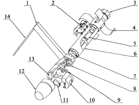 СНБЭ ВАТ фирмы Northrop Grumman: 1 − консоль крыла; 2 − электронный блок запуска термобатареи; 3 − место для укладки двух парашютов; 4 − консоль стабилизатора; 5 − термобатарея; 6 − электронный ПИМ; 7 − основной заряд БЧ; 8 − рулевой привод; 9 − центральный электронный блок; 10 − инерциальный измерительный блок; 11 − лидирующий заряд; 12 − ИК ГСН; 13 − стабилизатор напряжения; 14 − акустический датчик (4 шт.). Схема: army-technology.com