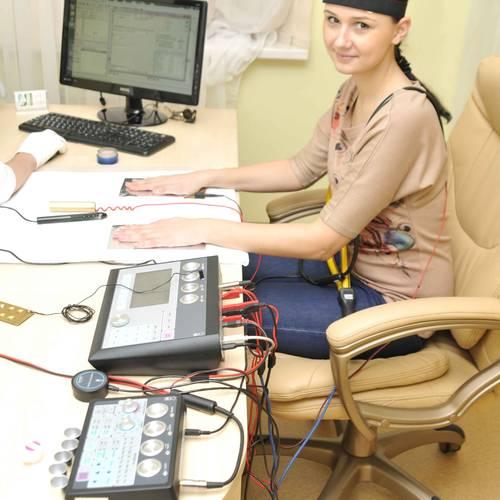 В день приема меня мониторили прям с утра: помню ли о записи, разобралась ли с адресом. Клиника располагалась в бизнес-центре рядом с м.Новослободская: захожу, поднимаюсь на этаж. Поначалу все выглядело вполне убедительно: стойка регистратуры, кожаные кресла, кулер с водой, журнальный столик с кипой разномастного глянца про здоровье - в общем, полный набор. Заполнила довольно подробную анкету на тему своего здоровья, и красотка в туго накрахмаленном халате отсканировала мои паспорт и страховой полис. Пригласили в кабинет: сажусь, осматриваюсь в поисках томографа или двери в «камеру Фарадея» – ничего нет. Воззрилась на врачиху: та села к компьютеру и начала вводить данные моей анкеты. Тётя мне не понравилась - а-ля худший вариант дикторш советского телевидения: лет пятидесяти, яркий макияж, грузная, на голове – начёс, плюс - искусственные ногти.