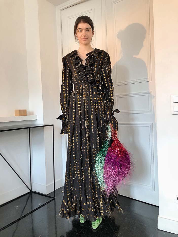 ASHISH. Наш король пайеток не изменяет себе. Недвусмысленные надписи, повторяющие логотипы известных кредитных систем, «пушистый» люрекс, яркие цвета — всё в коллекции хорошо. Выбрали несколько отличных вечерних нарядов для каждого. Ваш новогодний выход предрешен.