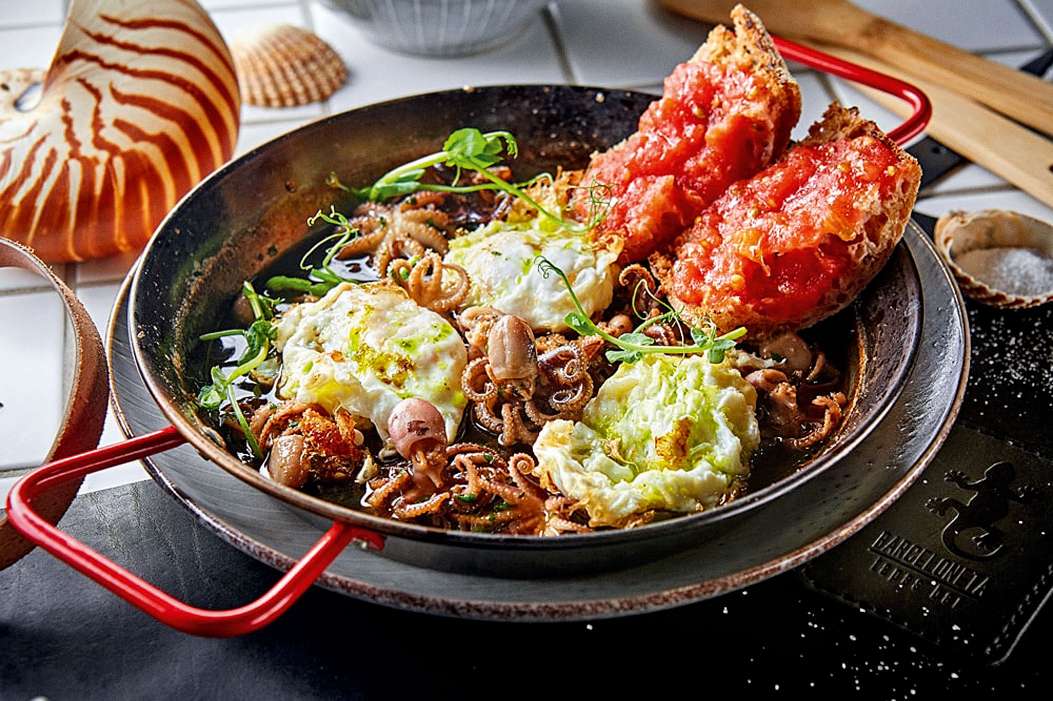 Утро в тапас-баре Barceloneta, единственном корнере испанской кухни в гастроцентре «ДЕПО», можно растянуть на весь день. Заказав завтрак до 12:00, можно рассчитывать на не менее прекрасный бонус —безлимитное игристое. Если все-таки вы привыкли начинать утро с кофе, то к нему идеально подойдут тосты: например, с томатами и авокадо, с баклажаном и фуа-гра или тост с лососем и авокадо. В любое блюдо по желанию можно добавить хамон, копченый лосось или салями. Тем, кто предпочитает более плотные завтраки, понравятся «утренняя» вариация паэльи с яйцом, яйцо пашот «Барселонета» с морепродуктами, «шакшука» или пышный омлет с крабом.