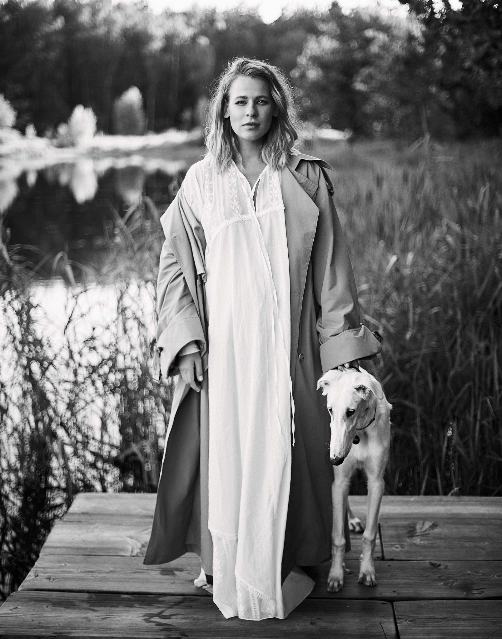 Не ты одна меня именно в этом ракурсе спалила. (Смеется.) Я была так счастлива, когда Константин Юрьевич (Константин Богомолов. — Прим. ОK!) мне позвонил с предложением поучаствовать в этом проекте в таких предлагаемых обстоятельствах: пандемия, самоизоляция, шестой месяц... Подумала: «Ну в какой нормальной жизни ты смогла бы сняться, да еще и в основной роли?» Это из разряда чудес, когда случаются вещи, которые ты объяснить не можешь, но они к тебе приходят потоком. Кстати, в прошлый раз, когда я была Ваней беременна, я тоже на шестом месяце снималась, это был фильм «Кислота», там моя героиня сообщала своему сыну, что ждет ребенка. Мы предполагали, что персонаж может быть... с немножечко измененными формами. (Улыбается.) Ну и здесь тоже: в конце я сообщаю, что беременна.