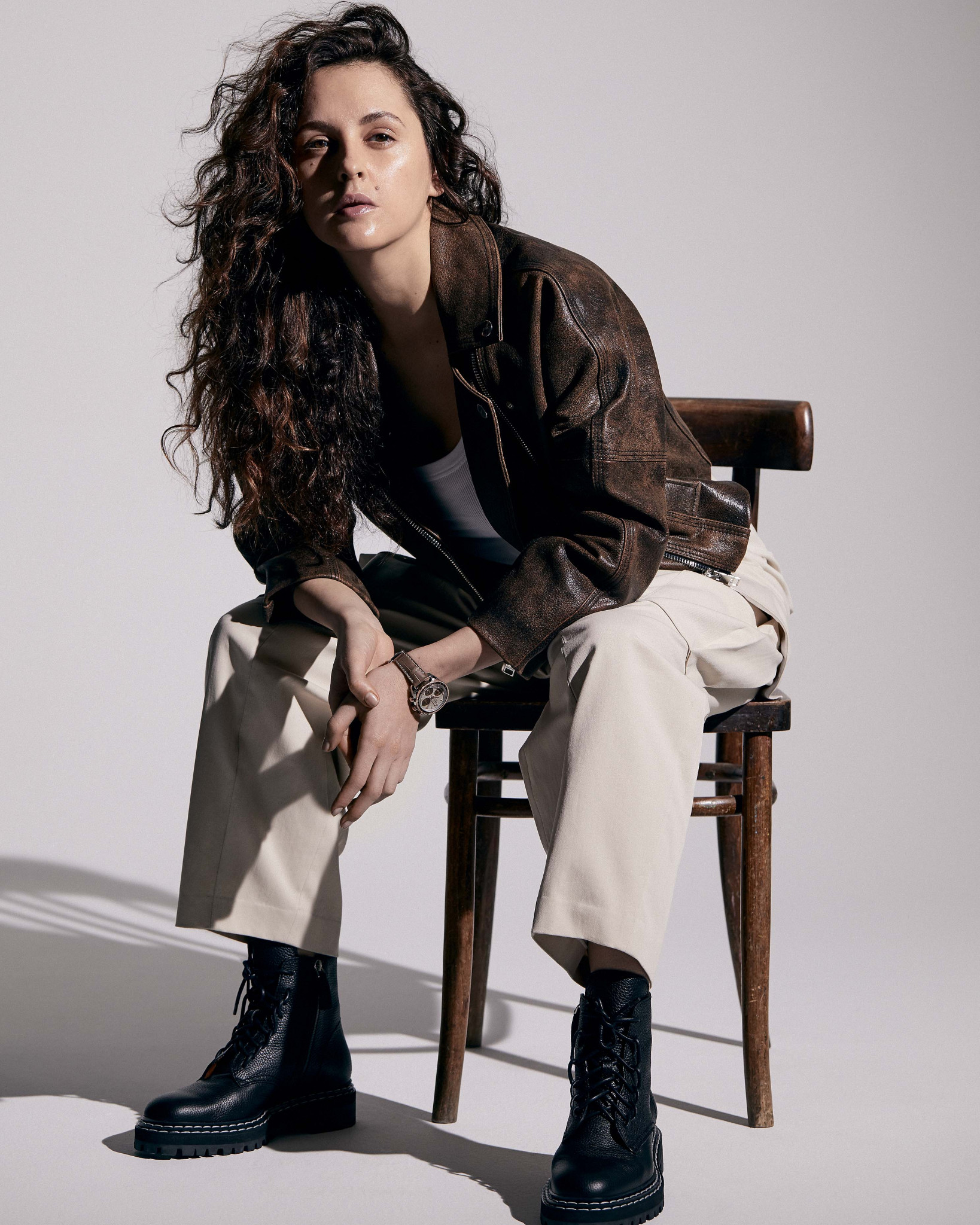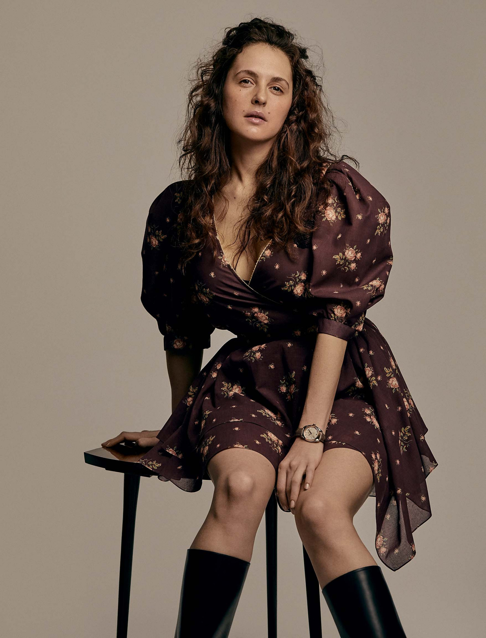 Вот, кстати, я убираю телефон, когда спортом занимаюсь и когда ем. Ценить свое время... Сейчас я немного забегу вперед. У нас получилась съемка для вас такая честная (надеюсь, и интервью будет таким же), у нас суперклассная команда, мои любимые профессионалы своего дела: Оля Тупоногова-Волкова, Марина Рой, другие девочки. Меня практически не красили, только тон и всё, даже ресницы не красили. Я смотрела сегодня фотографии — там следы на шее, которые с детства у меня, там уставшее лицо, потому что я была очень уставшая — видно, что человек что-то делал до этого. Но мне это нравится, потому что это очень естественно... Что касается времени, я недавно играла спектакль «Бэтмен против Брежнева», который очень люблю, там коллеги уникальные, удивительные. И вот я играю свою героиню Лёлю и понимаю, что за последний год, за исключением, может, месяца, я всё время играю в театре, а если я не в театре, то всё равно в театре. Я понимаю, что проходит моя жизнь, а я проживаю это время, существуя...