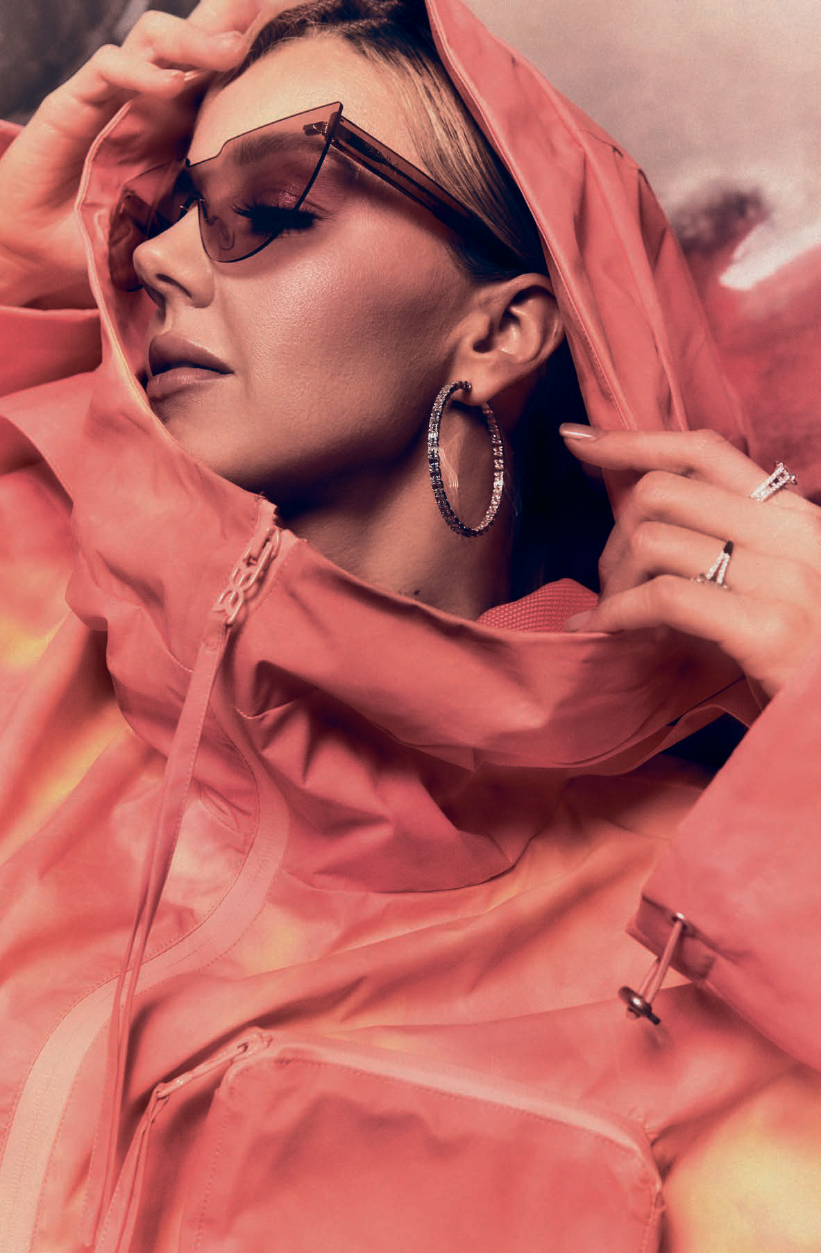 На Юлианне: парка Monochrome, очки Fakoshima, cерьги и кольца с бриллиантами MIUZ Diamonds