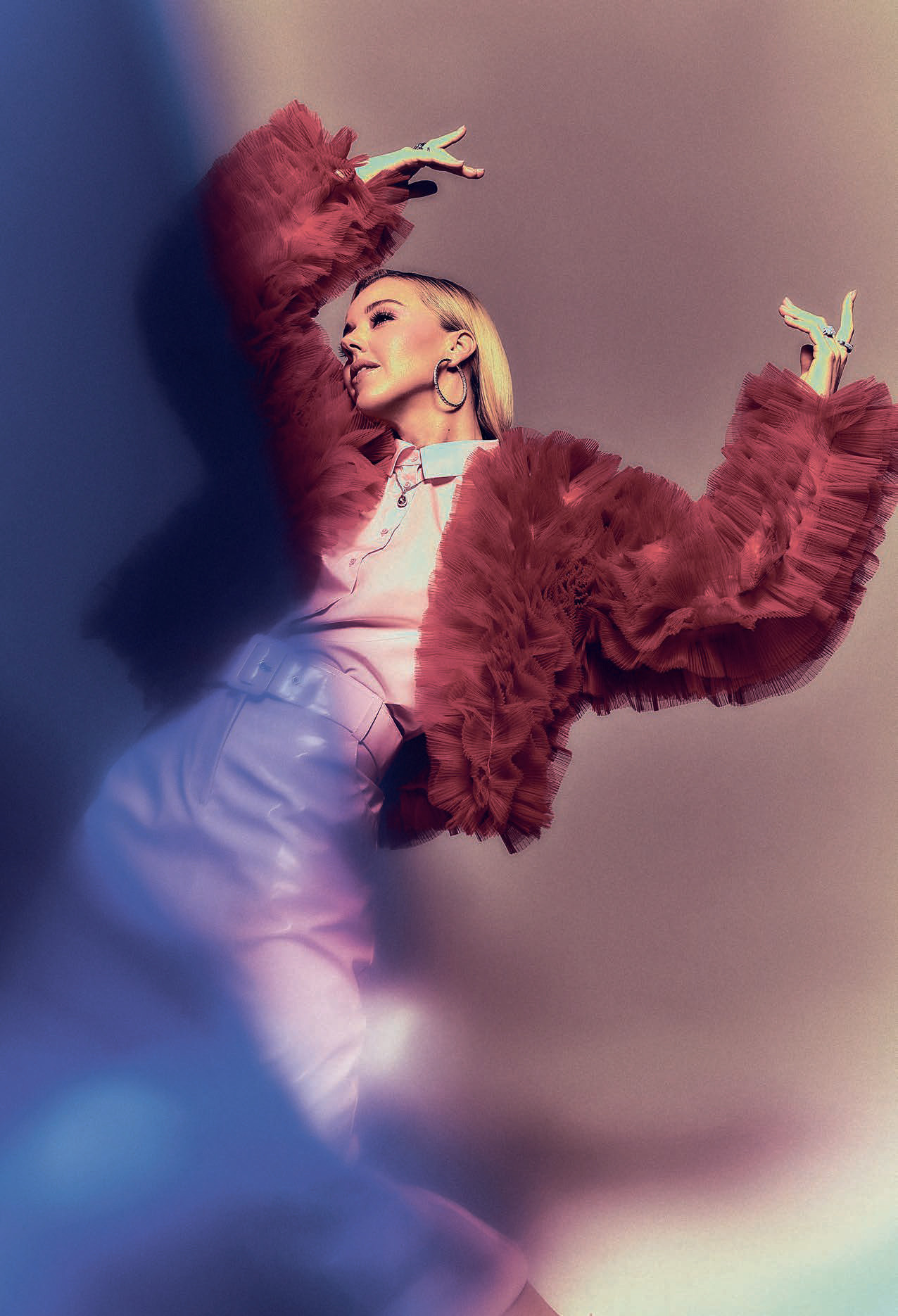 Если честно, я никогда физически, кожей не чувствовала, что я чей-то кумир. Безусловно, я знаю, что у меня есть поклонницы и поклонники, я вижу иногда, как люди реагируют, переживают, волнуются, когда меня видят. Мне кажется, это больше про ощущение не меня, а моего образа. Например, у меня есть история. Николь Кидман — это не мой кумир, но я встречалась с ней на мероприятии в Санкт-Петербурге. Когда мы увиделись, она задала мне какой-то вопрос, я так разволновалась! Казалось бы, что такого, я общаюсь с большим количеством известных людей, сама уже певица, телеведущая, а тут что вообще за реакция такая странная?! Я понимаю, что, когда люди случайно встречают известного человека, даже если не являются его большими поклонниками, почему-то бывает такая реакция тела. Возвращаясь к вопросу. Конечно же, я понимаю, что на мне лежит некая ответственность, что на какое-то количество людей я так или иначе влияю. Поэтому я всегда анализирую то, что делаю. Мне кажется, в принципе, на любом известном человеке лежит подобная ответственность, хотя, судя по тому, что мы видим, не всегда они это осознают. Честно признаюсь, меня это иногда возмущает — я сейчас как бабка. (Смеется.) Но, бывает, смотрю на поведение некоторых популярных людей и думаю: «Ну почему они это делают? Зачем в очередной раз делать что-то, чтобы за счет хайпа повысить свою популярность, если она и так высокая, вместо того чтобы сделать что-то такое, что заставит людей задуматься, что подаст им какой-то правильный пример». По идее, нужно прежде всего начинать с себя и меньше оглядываться на то, что делают люди вокруг, но все мы иногда любим посплетничать...