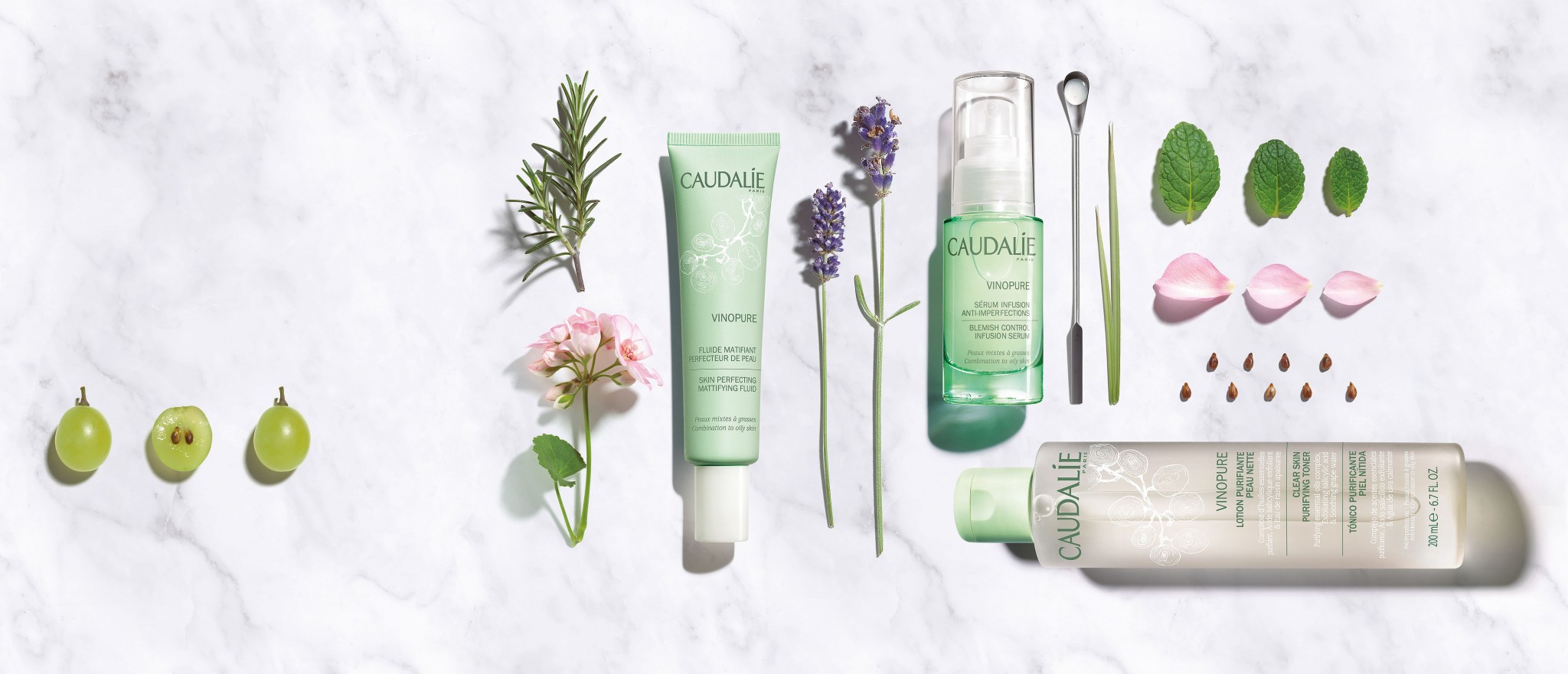 Исследования показали, что около 70% женщин, вышедших из подросткового возраста (25+), имеют жирную и комбинированную кожу. Именно для решения этой проблемы марка Caudalíe создала гамму средств Vinopure против проявления блеска, закупорки пор и акне. В формулах средств исключительно натуральные компоненты. Причем средства подойдут даже для чувствительной кожи, страдающей от всех перечисленных напастей. В линии три средства. Формула средств основана на сочетании полифенолов винограда и коктейля из шести очищающих эфирных масел: лаванды, цитронеллы, герани, розмарина, мелиссы и перечной мяты. Плюс cалициловая кислота из азиатского растения гаультерия и гидролат розы. Для очищения кожи и ее подготовки к нанесению последующего ухода первым делом стоит использовать очищающий тоник, затем — сыворотку для сужения пор, а через несколько минут — матирующий флюид. Визуальное улучшение состояния кожи лица марка Caudalíe обещает уже с первого дня использования, а качественный накопительный эффект ждите через две недели.