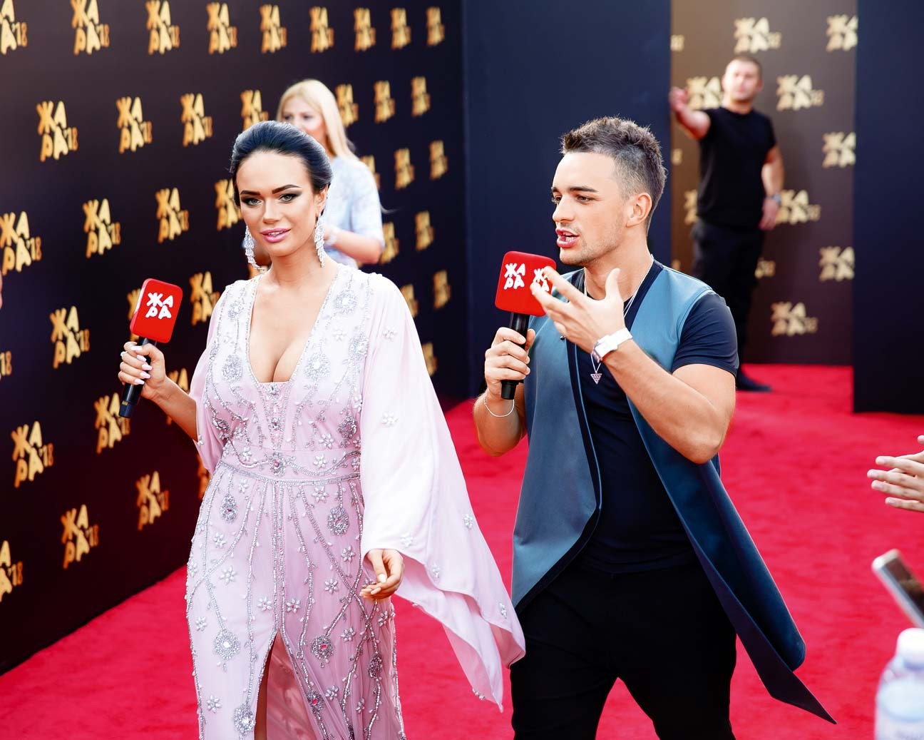 Самый смелый наряд для ковровой дорожки выбрала Вера Брежнева: в откровенном черном платье с глубоким вырезом она выглядела роскошно. Во время концерта артистка переодевалась несколько раз — то в красное мини-платье с воланами, то в обтягивающий серебристый комбинезон. Она оригинально перепела хит Валерия Меладзе «Салют, Вера!» на свой лад — «Салют, Валера!».