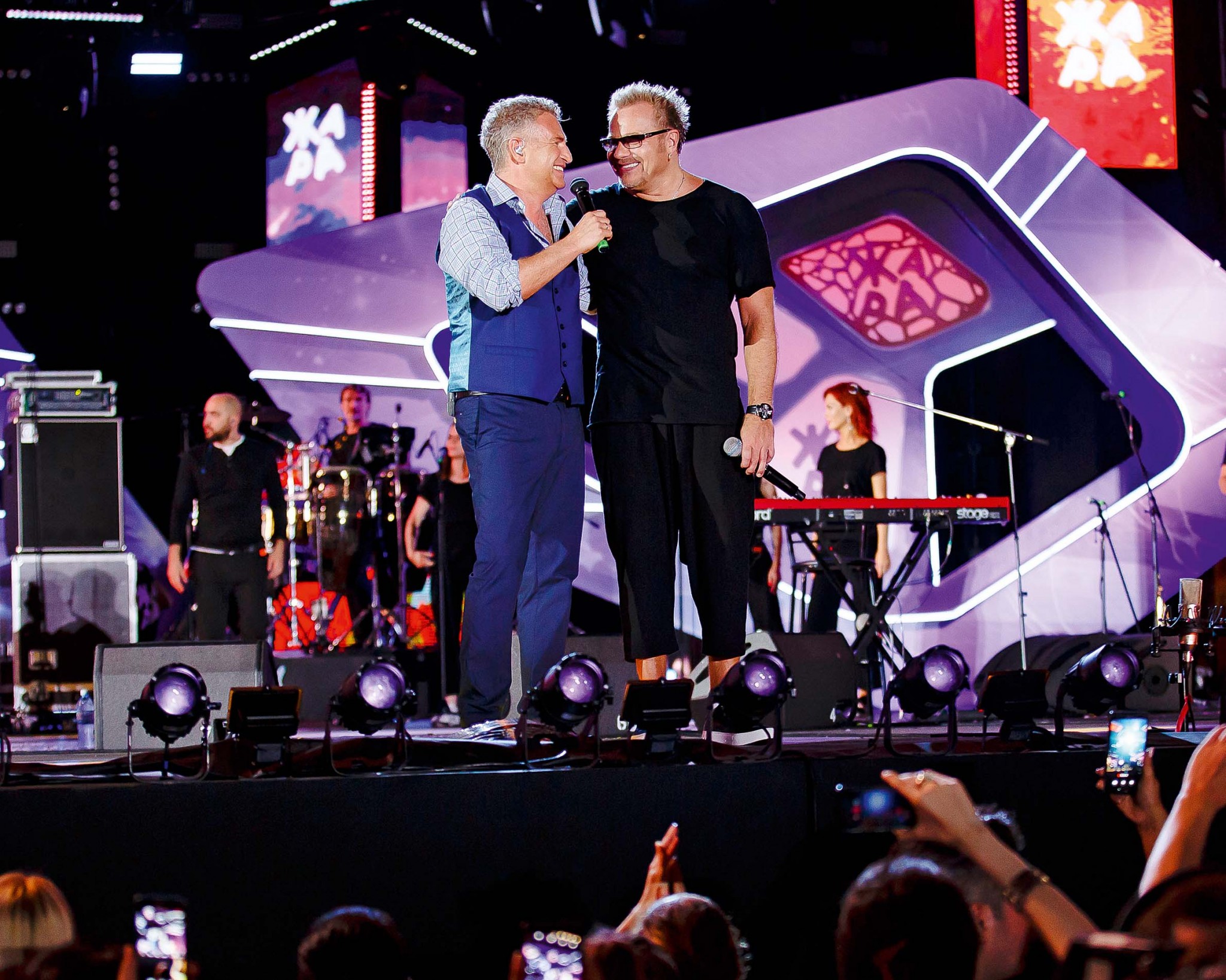Юбиляров чествовали Кристина Орбакайте, Анжелика Варум, Наталья Подольская, Стас Пьеха, Жасмин, Юлианна Караулова и многие другие артисты. Все они исполнили дуэты с виновниками торжества и кавер-версии их знаменитых хитов.