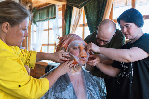 Сейчас съемки идут в пригородах Тобольска. Природа этих мест сказочная: леса, поля, разливы Иртыша (где, кстати, Емеля и ловит щуку) и Тобола... Царский двор тоже разместился в реальном объекте — туристическом комплексе «Абалак», построенном тут несколько лет назад. Здесь целый город: избы, терема, мостовые, царский дворец — всё готовое. Художники картины привезли с собой цветочки на деревья, немного реквизита и печку.