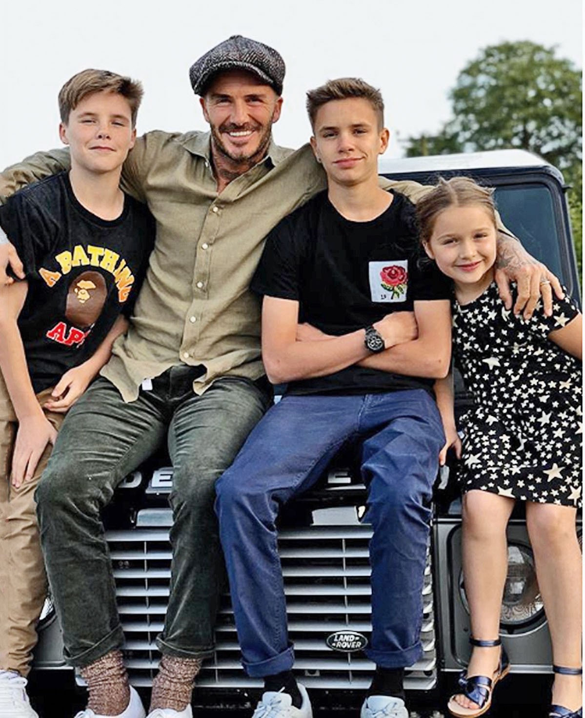 Дэвид Бекхэм с детьми — Крузом, Ромео и Харпер