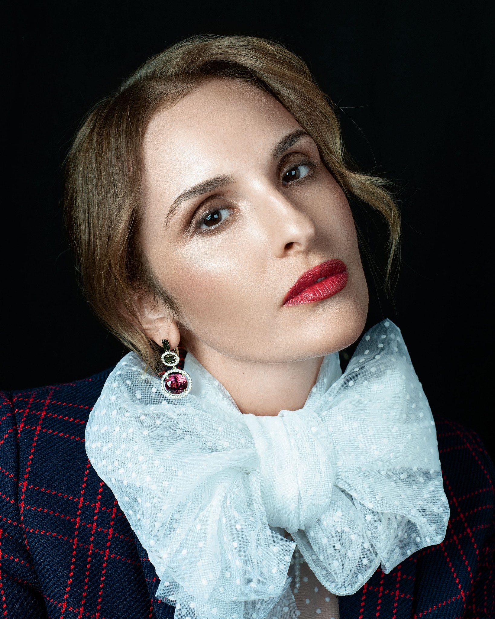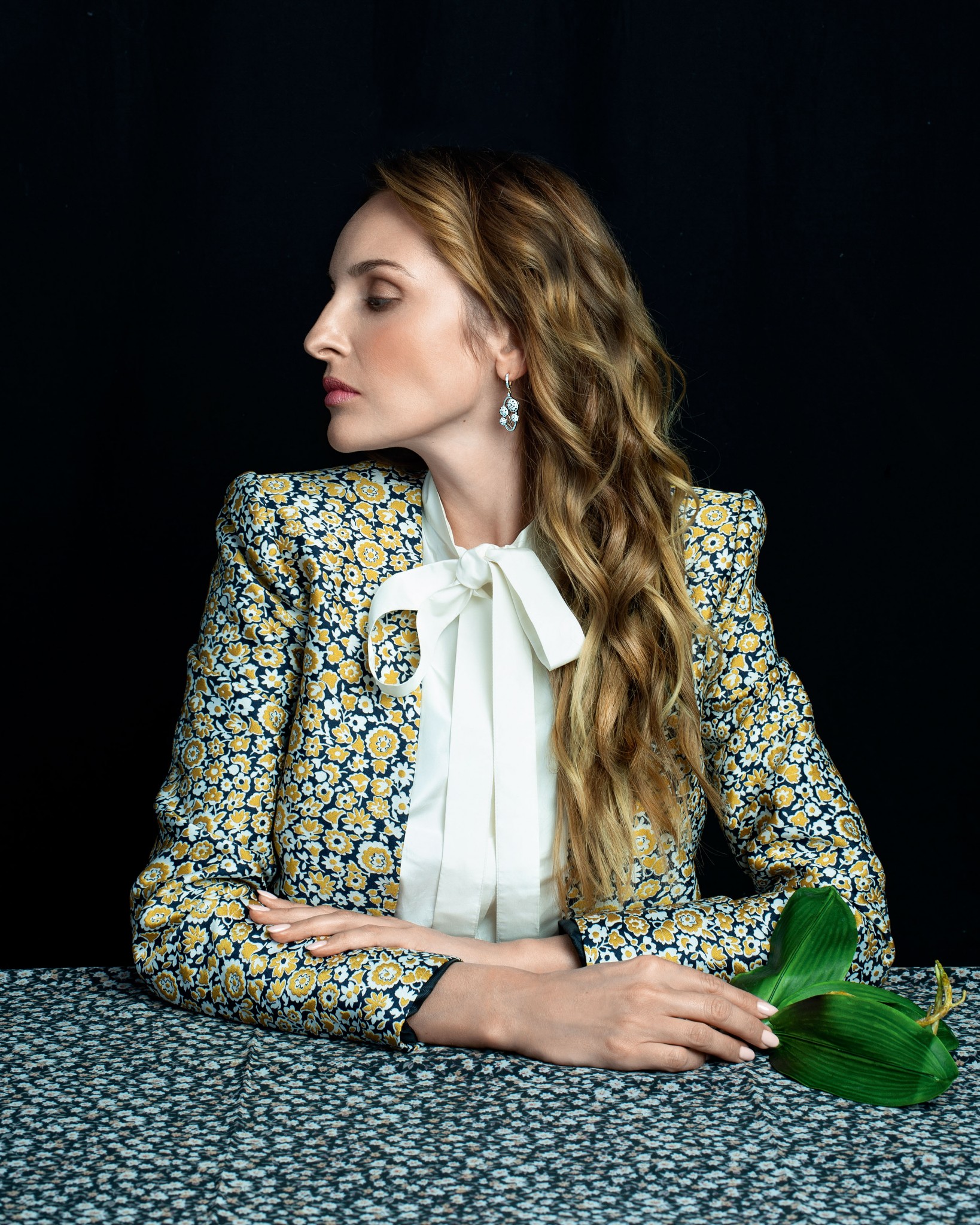 На Софье: пиджак, блуза, все – Dior, серьги Kabarovsky