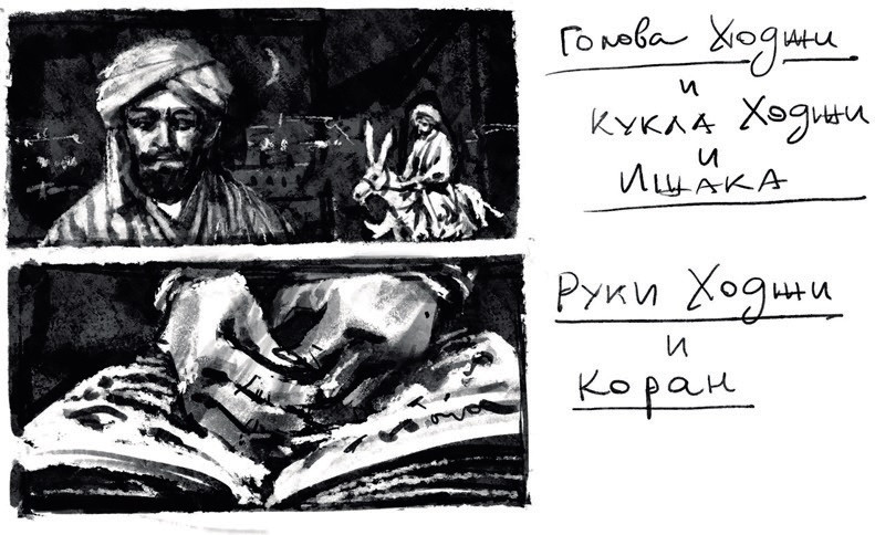 Знаете, я всю жизнь очень боялся театра — боялся неизвестности. Ты же не знаешь, что будет с этой историей на этой сцене, но с новым зрителем, как он себя поведет. Весь прошлый век человечество пыталось осмыслить и принять ту мысль, что наблюдающий за экспериментом неизбежно изменяет его результат. Так называемый эффект наблюдателя. Это очень красивая теория. Театр очень точно следует этому принципу. Но если говорить о нашем кукольном спектакле, это в каком-то смысле компромисс между кино и театром, поскольку голоса актеров записаны заранее. Это то, что пришло из кино. То есть «Ходжа», с одной стороны, состоялся в звуковой студии, где мы искали характеры, образы, импровизировали. А с другой стороны, актеры, которые водят кукол, живут вместе со зрителем, и именно благодаря им спектакль каждый раз рождается заново.