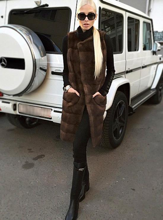 Раньше в холодное время года меховые жилеты модель явно предпочитала больше, чем разнообразные пальто и парки.