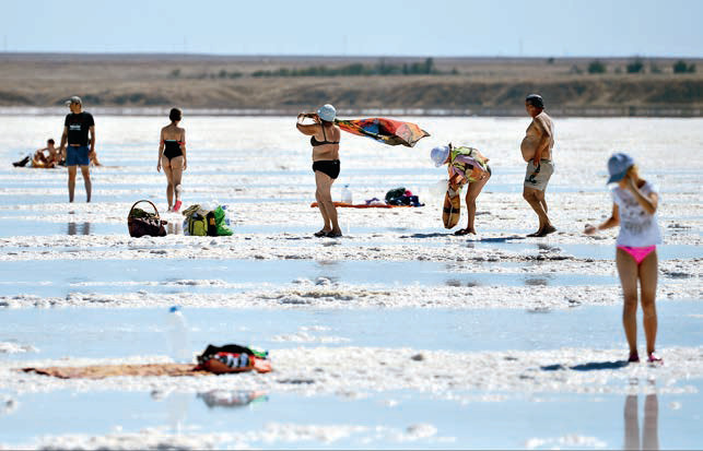 Я добиралась до Калмыкии на машине, взятой напрокат в Волгограде. Я сделала крюк и поехала через Астрахань, чтобы по дороге посетить знаменитое соленое озеро Баскунчак. В нем добывают от 1,5 до 5 млн тонн соли в год! По берегу озера имеются залежи лечебных глин, поэтому в теплые дни здесь можно встретить туристов и местных жителей, обмазанных с головы до пят глиной. На закате озеро выглядит особенно красиво. Соляные островки и рапа отражают цвет гаснущего неба, а в водной глади просматриваются идущие по небу облака.