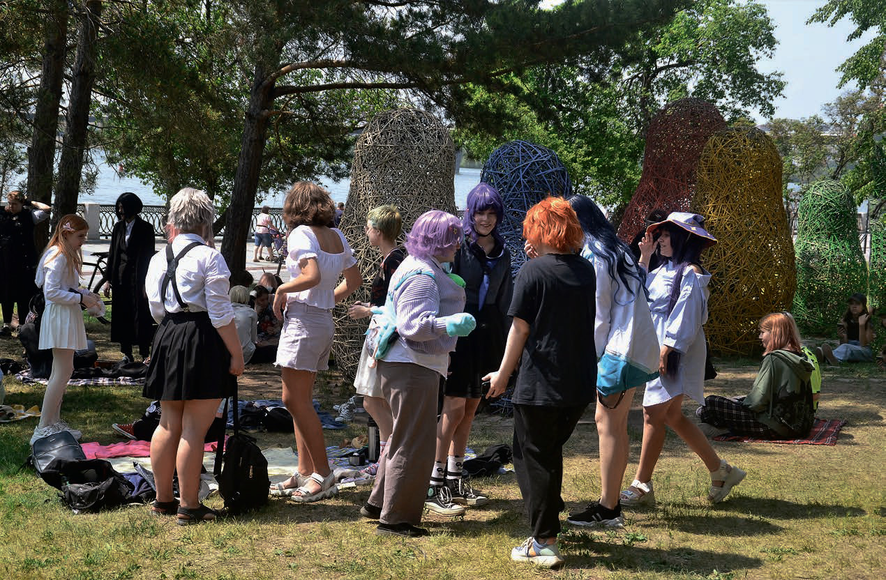 Набережная Оби была многолюдна из-за обилия аттракционов и арт-объектов. Молодежи было много: кто-то пришел ради косплея персонажей японских мультфильмов. Рядом с театром оперы и балеты было сразу несколько тусовок, включая скейтеров, вытворявших на своих досках что-то невероятное.