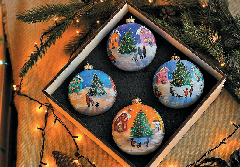 Следующей точкой нашего путешествия стала фабрика «Рождественское яблоко» в деревне Трубичино близ Великого Новгорода. Здесь открыли магазин-музей, где можно посмотреть и купить необычные елочные игрушки. Ручной росписи шары и другие стеклянные фигурки проходят через нежные руки работниц. Окна мастерской заиндевели, на изгороди и деревьях во дворе снежные шапки, в камине потрескивают дрова, а тонкие кисти в женских руках претворяют сказочные фантазии в живописную реальность.