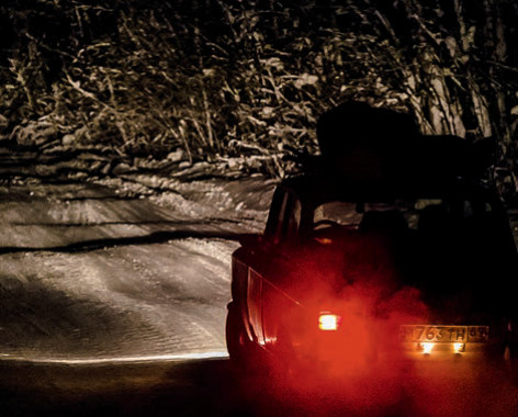 Через кочкарник и волны на зимнике в кромешной темноте полярной ночи.