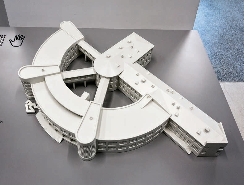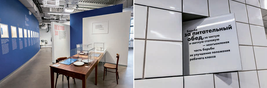 Проектированием фабрик-кухонь занималось паевое товарищество «Народное питание», или Нарпит, где и работала архитектор Екатерина Максимова. Ей посвящен отдельный раздел экспозиции. Екатерина Николаевна участвовала в проектировке Казанского вокзала под руководством Алексея Щусева, а также в разработке фабрик-кухонь в Москве, Свердловске и других городах. Проект в Самаре стал для нее первой самостоятельной архитектурной работой. Есть мнение, что Максимова создала его под влиянием и по типу конвейерной технологии Генри Форда. На первом этаже «серпа» размещались вестибюль, гардероб и магазины, на втором – обеденные залы. В «молоте» – кухня. По трем конвейерам в «серп» подавали еду, а грязную посуду доставляли в моечную. Предприятие должно было готовить в сутки 9 тысяч обедов для питания в зале и 3 тысячи в виде полуфабрикатов.