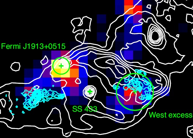Астрофизики обнаружили практически полное совпадение периодов прецессии джетов в двойной системе SS 433 и гамма-излучения соседнего газового облака. Ученые использовали данные наблюдений космического гамма-телескопа «Ферми» за 10 лет и создали карту излучения окрестностей микроквазара. Оказалось, что один из главных источников гамма-лучей с энергией в диапазоне 0,1–300 гигаэлектронвольт в этой области находится на расстоянии 400 световых лет от SS 433 и синхронизирован с периодическими колебаниями направления джетов двойной системы. Полученные результаты подвергают сомнению существующие теории происхождения гамма-излучения в микроквазарах, а в будущем могут позволить расширить представление ученых о формировании и распространении космических лучей. Статья опубликована в журнале Nature Astronomy.