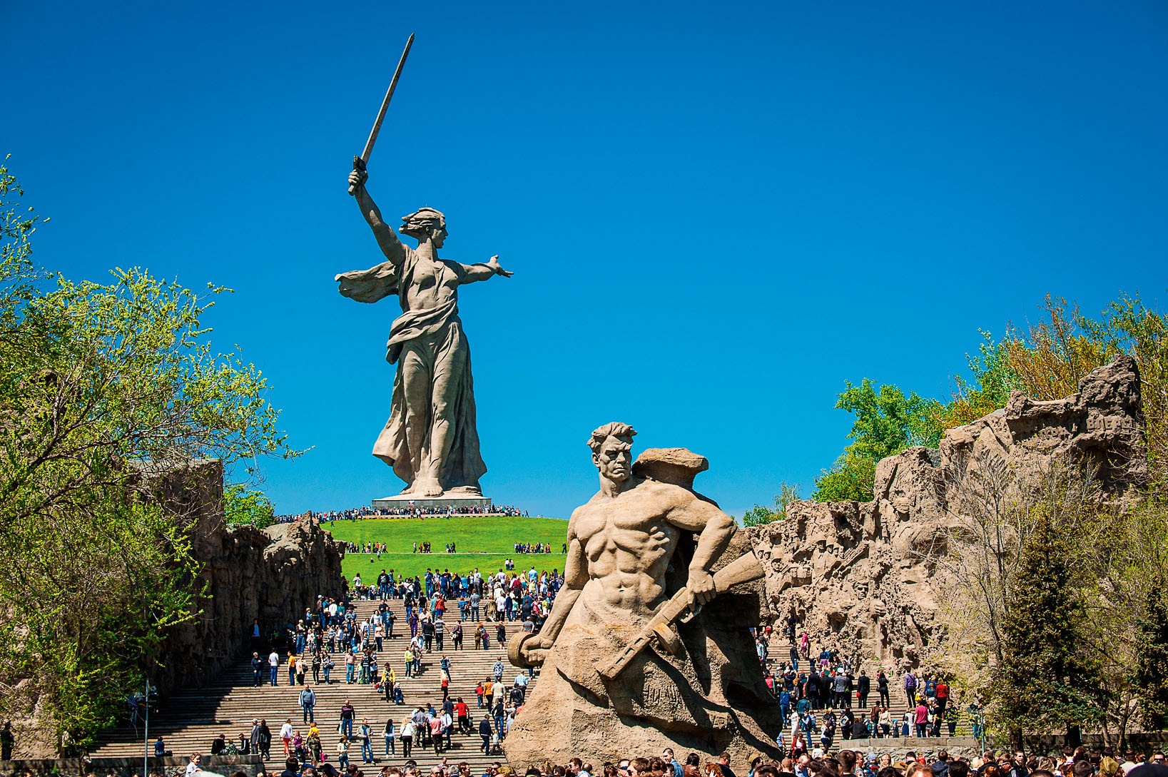 Что посмотреть в Волгограде? История современного Волгограда неразрывно связана со Второй мировой войной. В первую очередь в город-герой приезжают посетить Мамаев курган, где возвышается легендарная «Родина-мать». Исполинская 85-метровая статуя считается одной из самых высоких скульптур в мире и видна практически из любой точки города. От подножия кургана к статуе ведет ровно 200 ступенек – по количеству дней обороны Сталинграда.