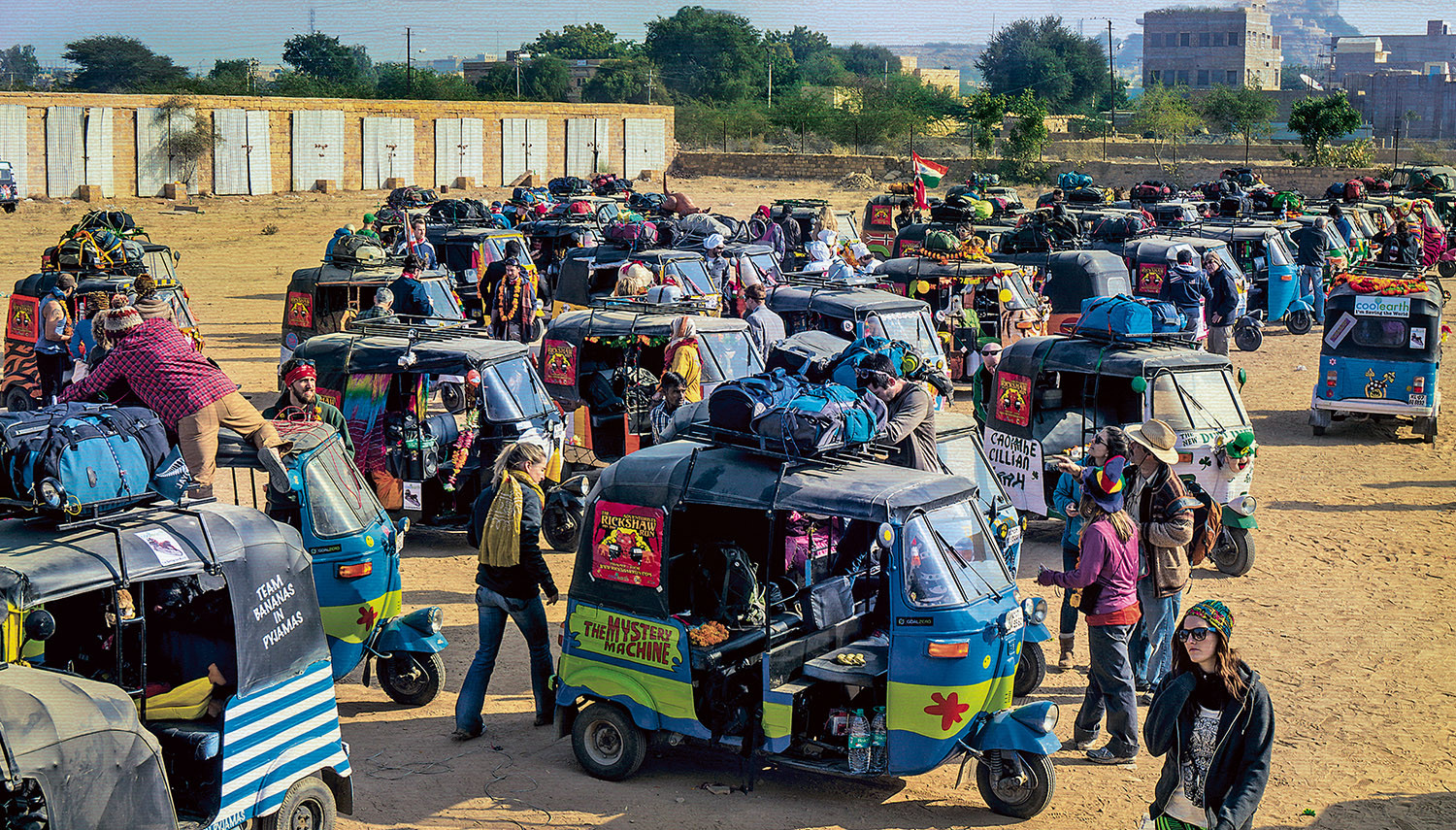 В этот день в январе улицы Джайсалмера полны разгоряченных молодых иностранцев. Парни и девушки обливаются потом в своих безумных карнавальных костюмах. Местные зазывалы изо всех сил пытаются залучить их в свои торговые палатки, но тщетно. Этих ребят не интересуют местные достопримечательности и сувенирные безделушки. Они здесь исключительно ради гонки.