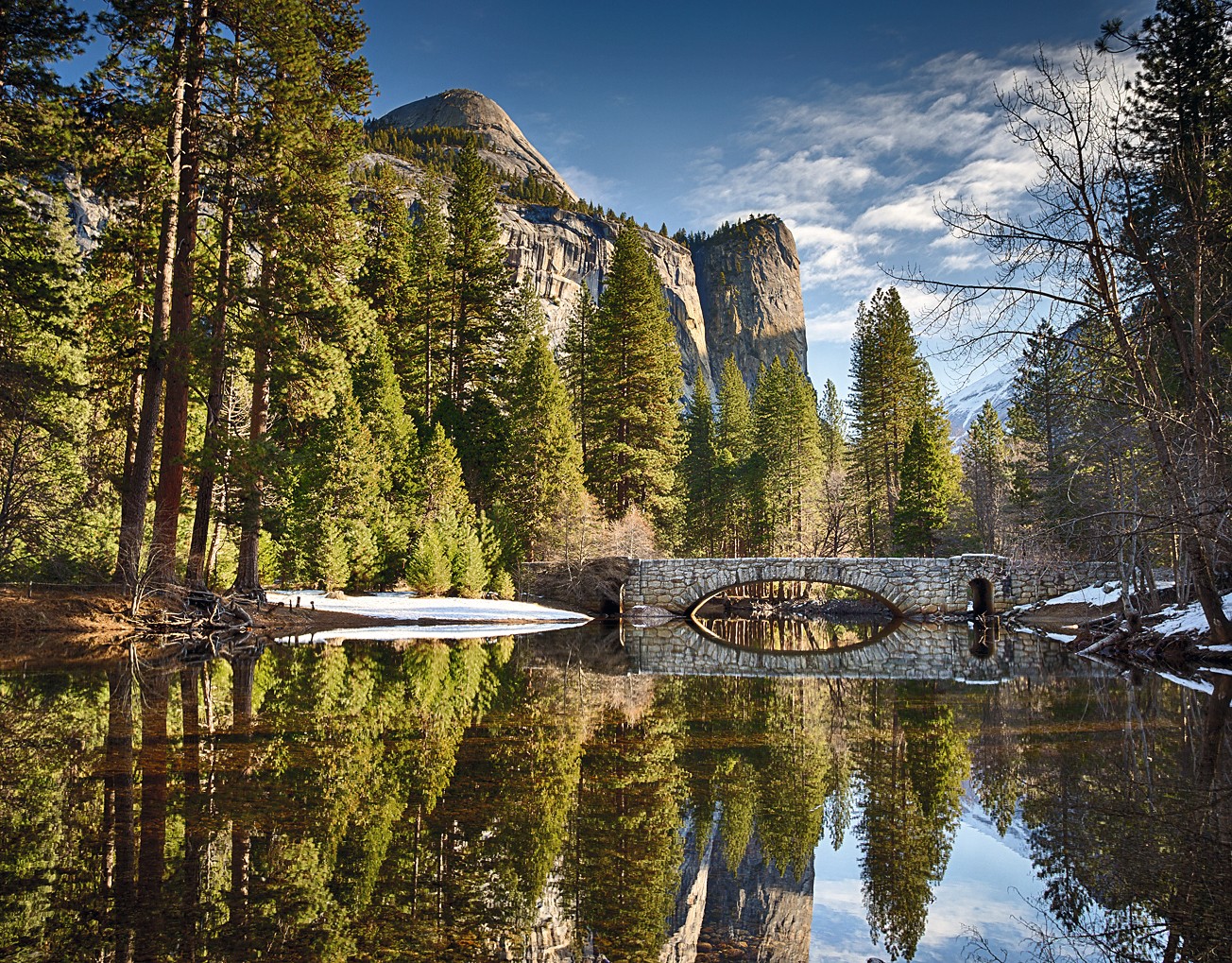 Долина реки Йосемити знаменита отвесными гранитными скалами, буквально вздыбленными на километровую высоту. За парадом утесов долина расширяется, и появляется что-то вроде обзорной площадки для самого большого водопада долины. 738-метровый водопад Йосемити – один из самых высоких в мире. Любители хайкинга могут подняться на его вершину! Также популярны водопады Брайдалвейл («Вуаль невесты») и «Конский хвост». Любоваться им лучше всего как раз весной, когда они наиболее полноводны.
