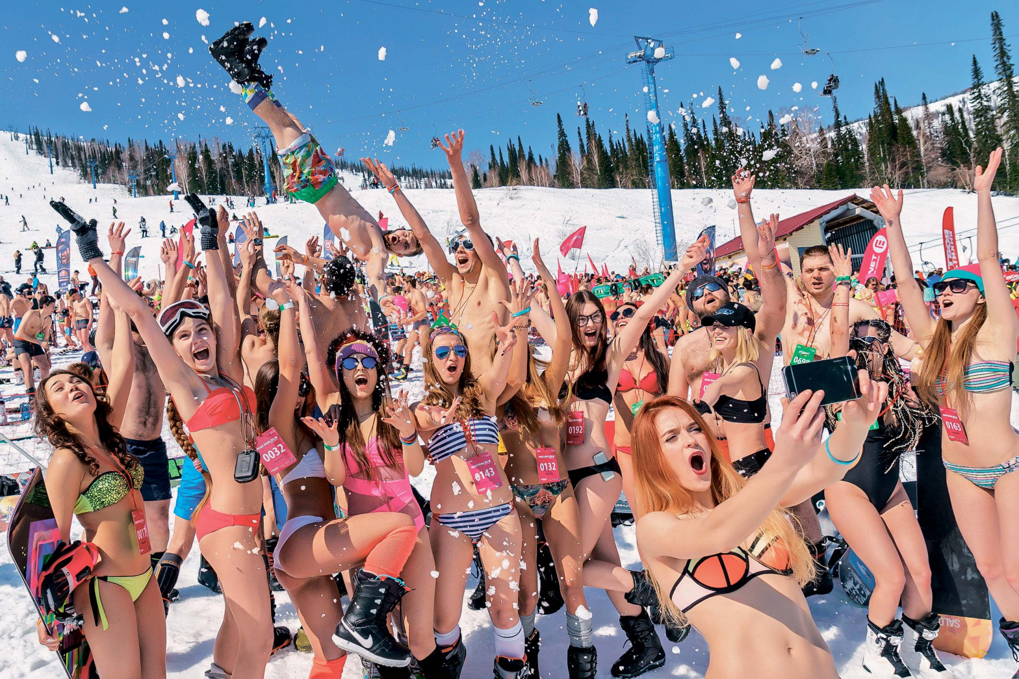 О чем это вообще. Масштабное событие Grelka Fest на курорте Шерегеш ежегодно завершает горнолыжный сезон в апреле. Сотни красивых, разгоряченных девушек разной степени раздетости, но чаще – в мини-бикини, устраивают эффектные спуски на лыжах и сноубордах с 1270-метровой горы Зеленая. Повсюду звучит музыка, проводятся open air концерты, ди-джеи и бармены угощают своими лучшими сетами, выбирается «Мисс Шерегеш», проходит фестиваль красок, конкурс go-go и много чего еще. О том, с чего начался этот праздник красоты и свободы, Playboy рассказал за рюмкой можжевелово-малиновой настойки один из идеологов «Грелки», а ныне владелец местного бара «Горный патруль» Константин Кошкин. «Идея родилась в 2013 году. Это была частная инициатива единомышленников. Нашелся спонсор – бренд нижнего белья и купальников, мы подали заявку в районную администрацию, где ее отложили в долгий ящик. А потом, когда событие состоялось и был официально зафиксирован рекорд Гиннесса – не менее 500 человек одновременно совершили спуск с горы в одних купальных костюмах, новость об этом разлетелась по всему миру, на фестиваль обратил внимание губернатор, с нашей бумаги сдули пыль – и «Грелке» был глобально дан зеленый свет».