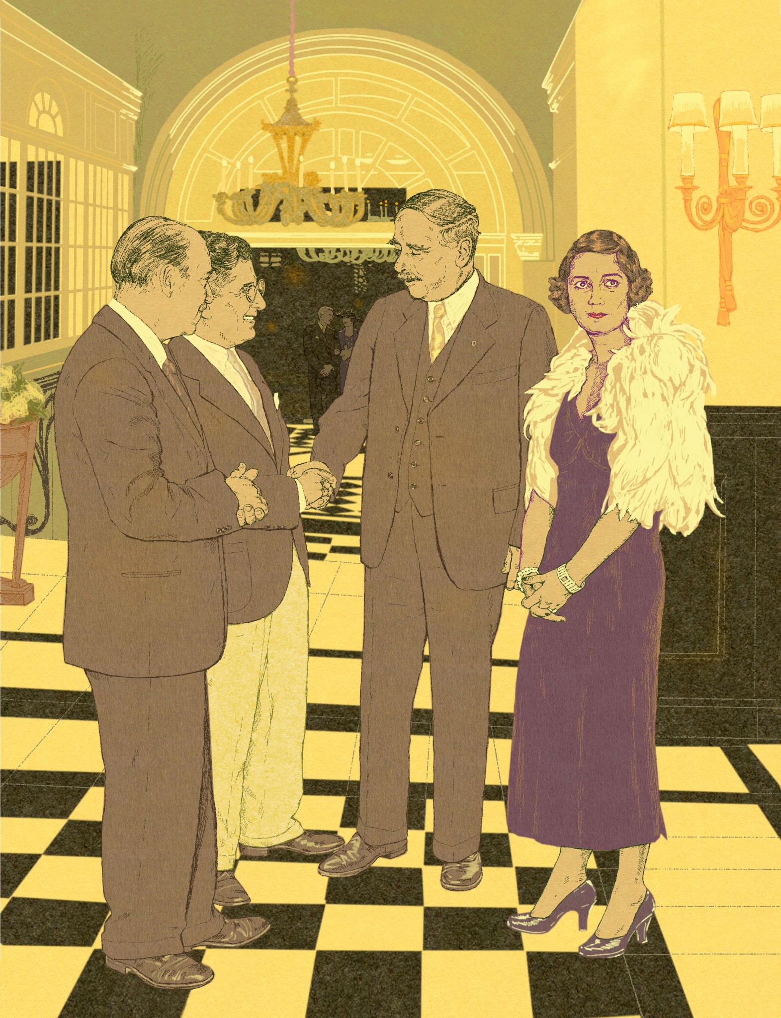 Вестибюль и лестница гостиницы «Савой» в тот вечер были заполнены литературными знаменитостями. Клуб поэтов, очеркистов и романистов (РЕN) устроил банкет в честь семидесятилетнего юбилея его бывшего президента – господина Г.Д. Уэллса. Виновник торжества стоял наверху лестницы; с одной стороны от него стоял Д.Б. Пристли, исполнявший роль церемониймейстера, а с другой – баронесса Будберг в роли его жены. Жена Пристли тоже была здесь, придавая мероприятию ауру респектабельности.